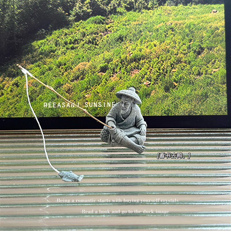 新品无聊了 看l看渔翁钓鱼小老头 钓鱼 微观造景装饰摆件礼物