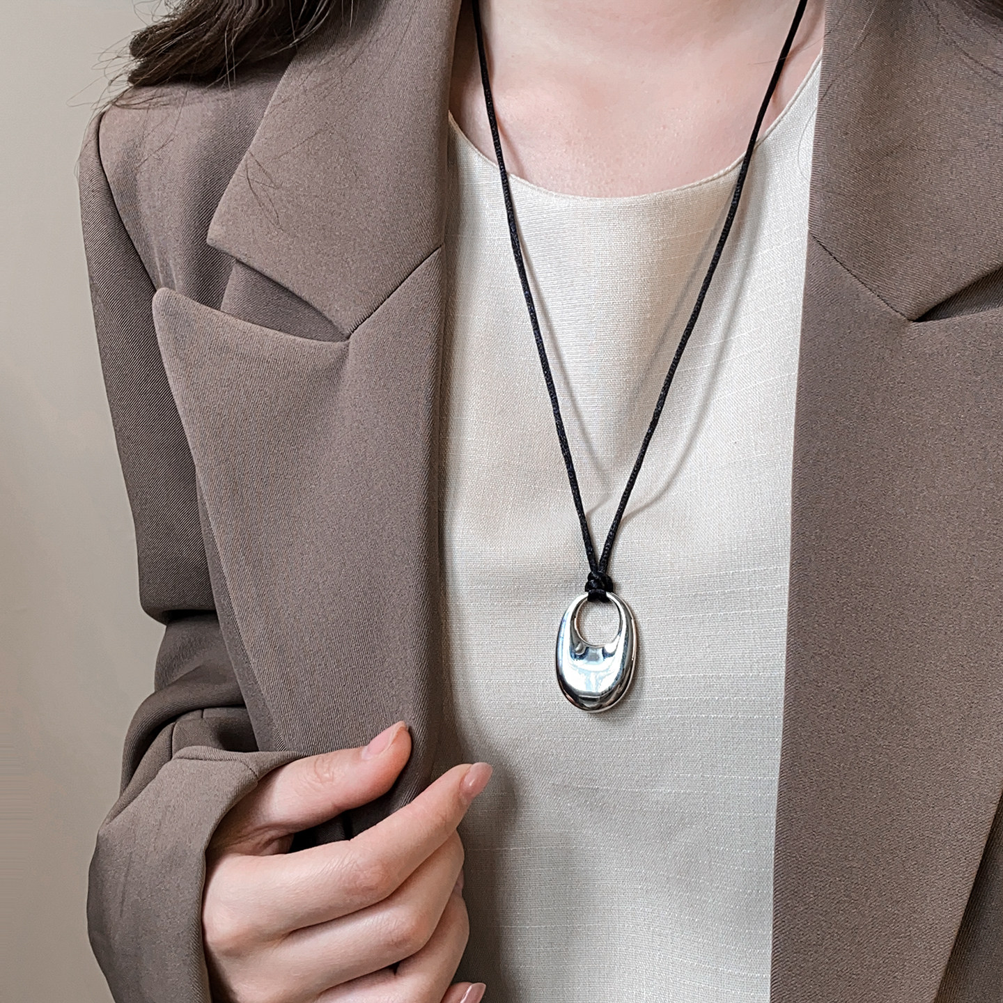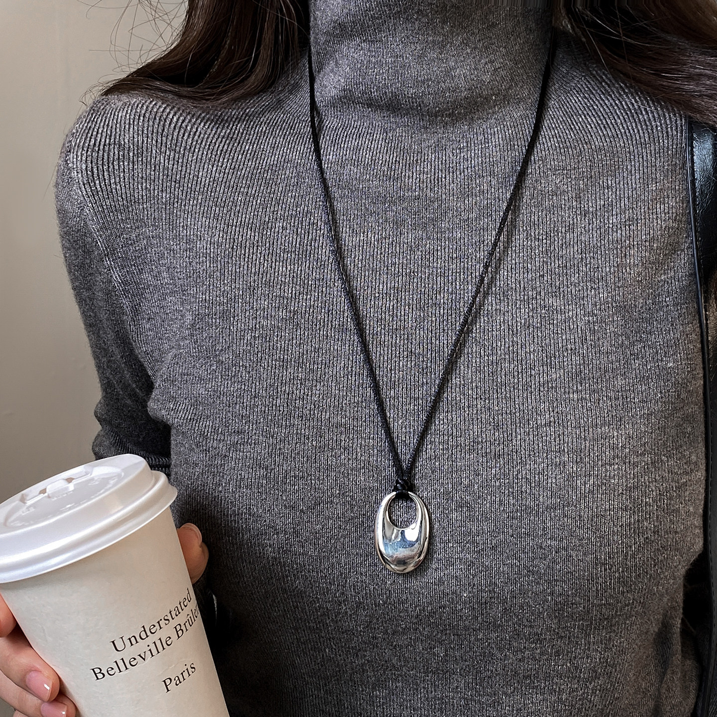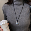 黑色立体镂空水滴吊坠皮绳长项链女2026新款毛衣链高级感轻奢小众