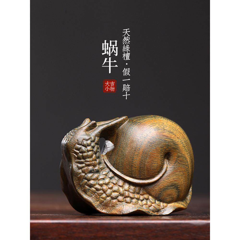 天然绿色檀香玫瑰木桌面小饰品跑蜗牛创意实木可爱木雕不生气饰品