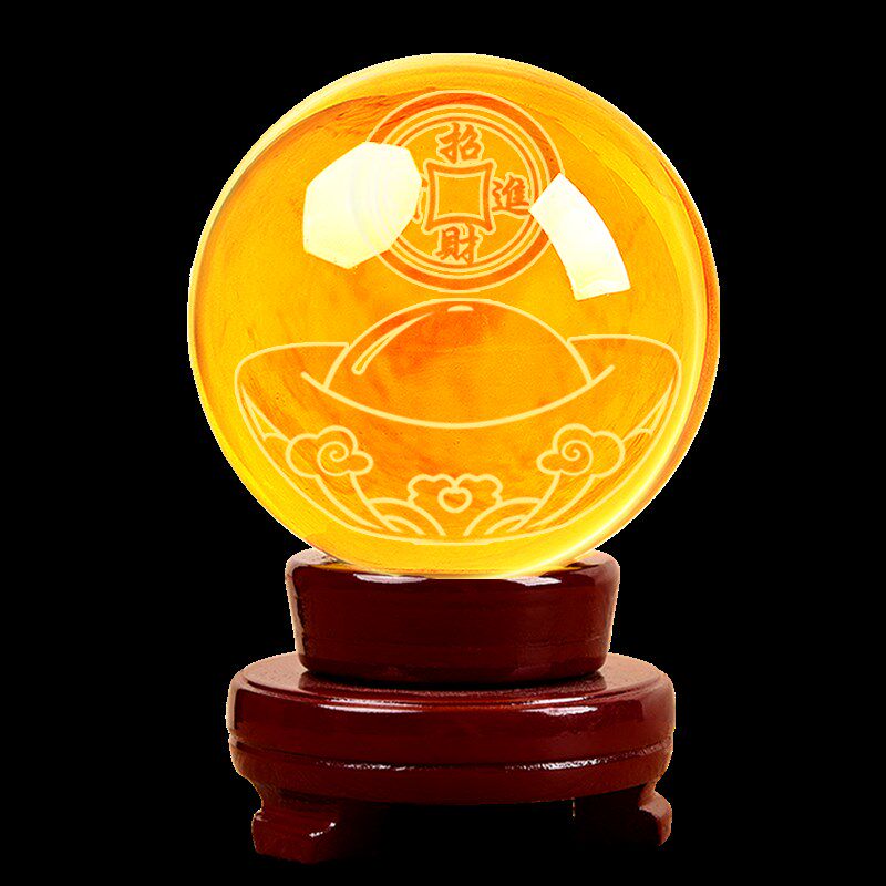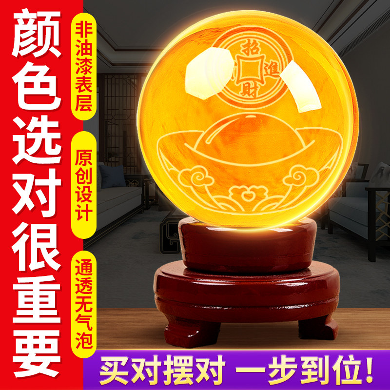 黄色水晶球摆件白色红紫蓝粉色透明玻璃球开业客厅