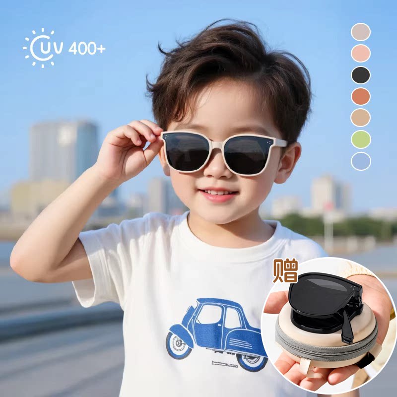 可折叠儿童墨镜男童遮阳防紫外线女童户外潮防晒宝宝太阳眼镜白色