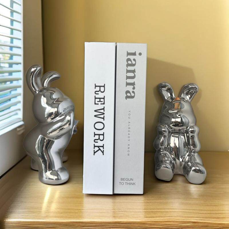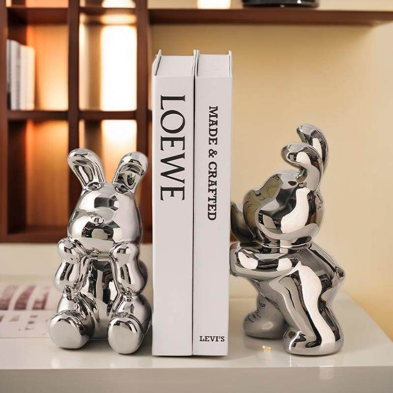 现代家居工艺摆件陶瓷书挡兔客厅书房书柜装饰品轻奢创意高档摆设