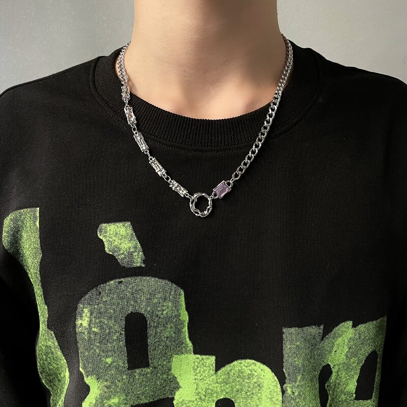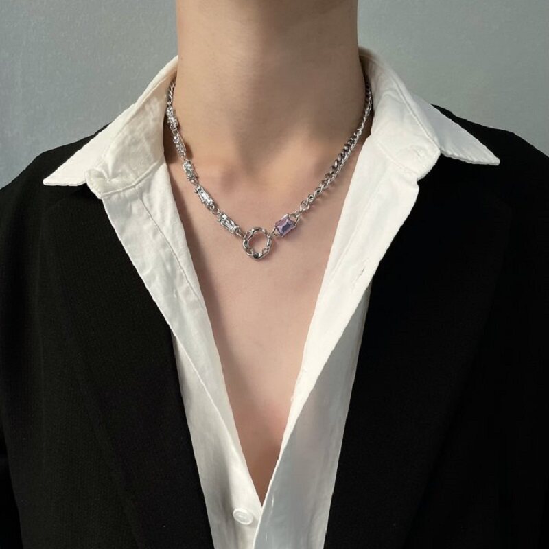 钛钢水晶项链男原创设计高级感小众气质时尚潮牌配饰ins嘻哈