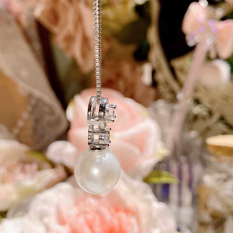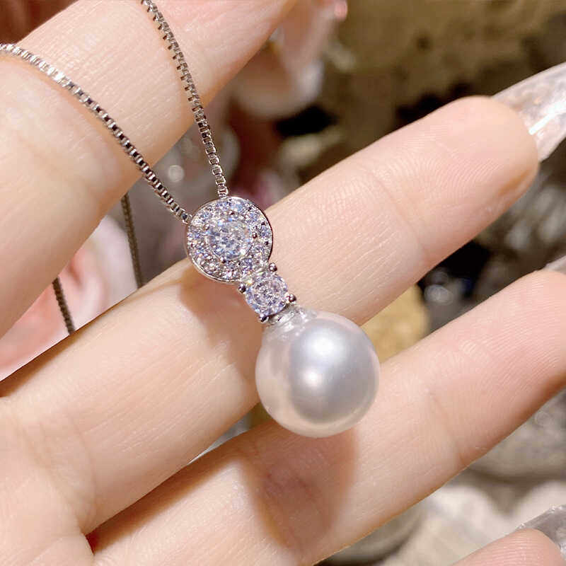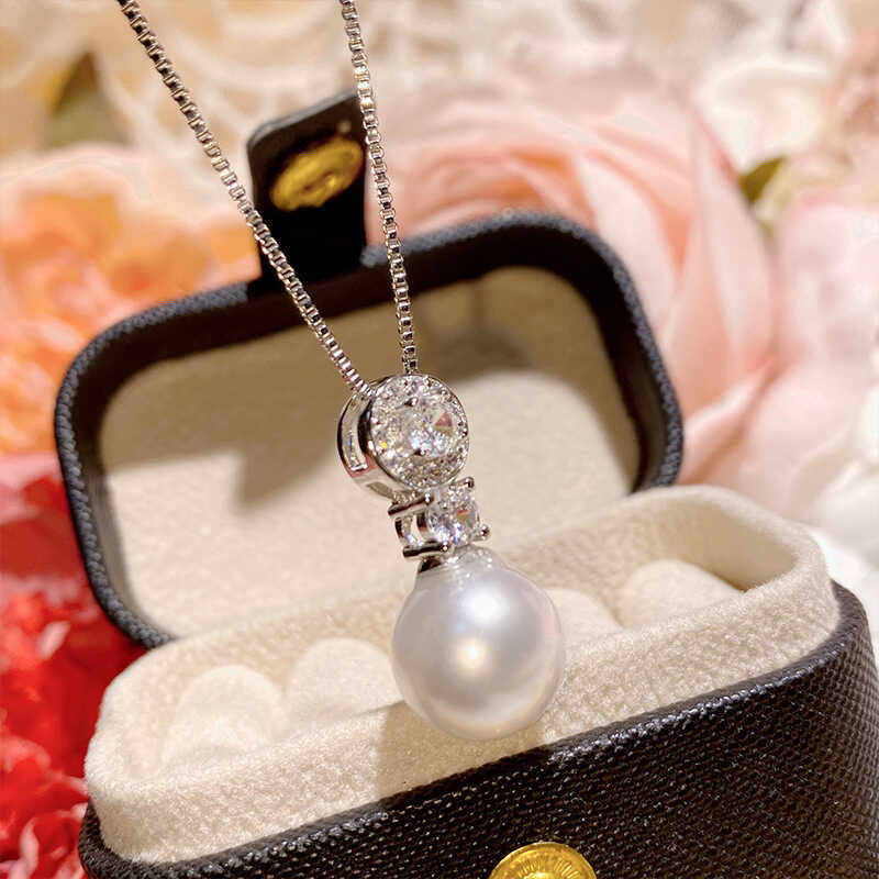 山茶经典气质戴妃单颗澳白珍珠项链女 镀金镶仿莫桑高碳闪钻项坠