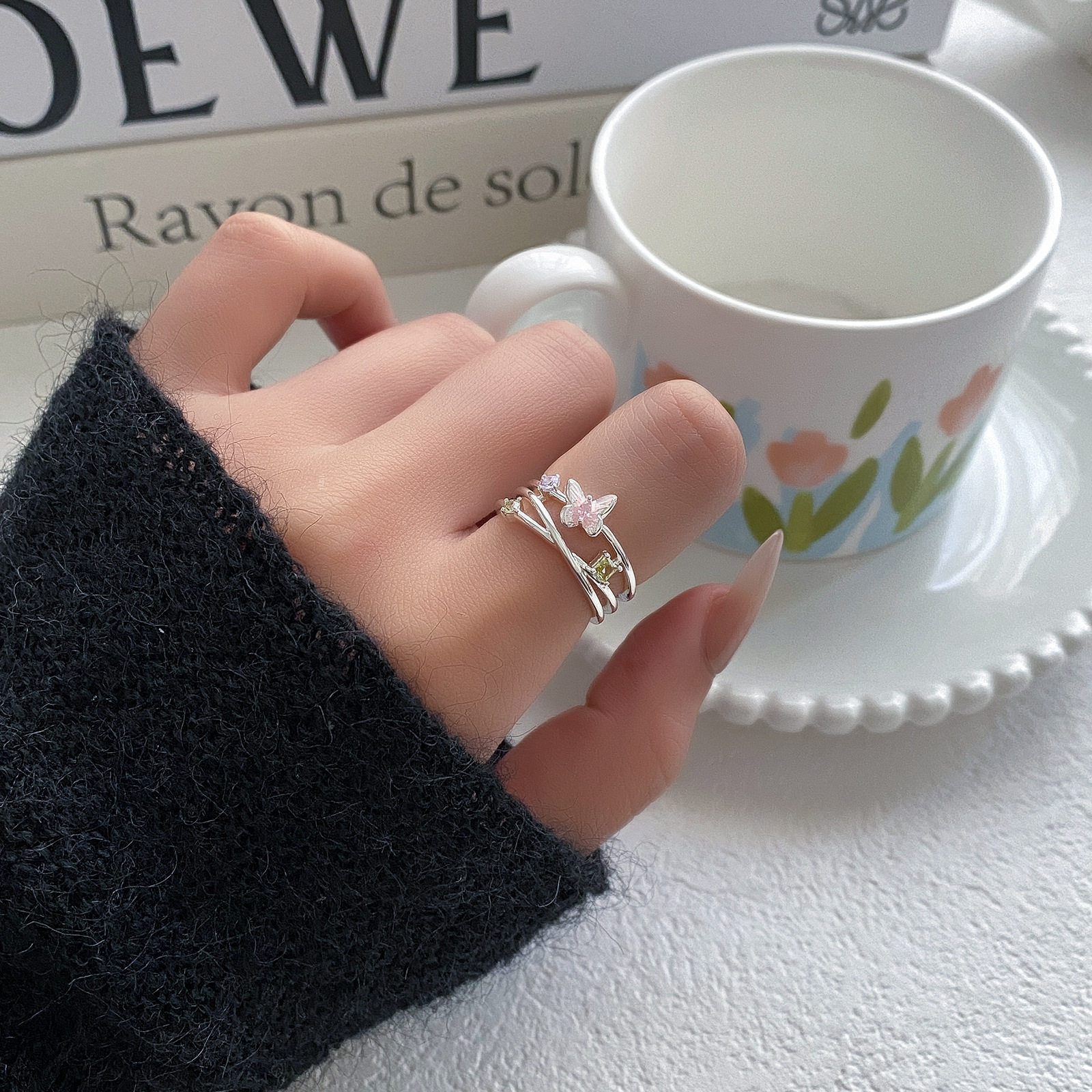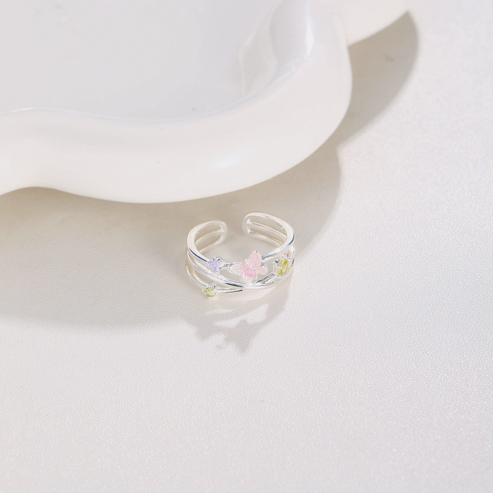 ins风春季小清新蝴蝶星星可调节开口指环戒指小众轻奢食指戒
