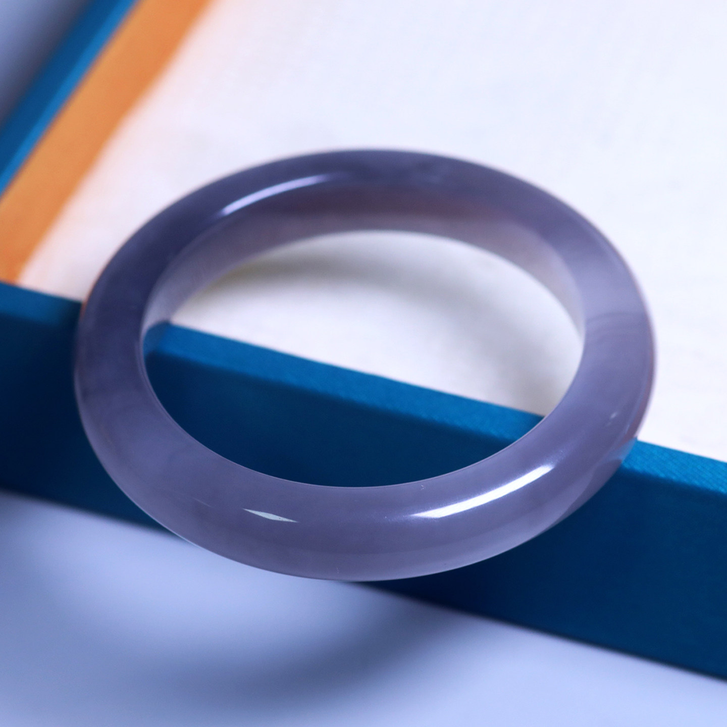 珪宝52.8mm和田玉高冰烟紫手镯女款宽条玉镯子手饰天然带证书D416