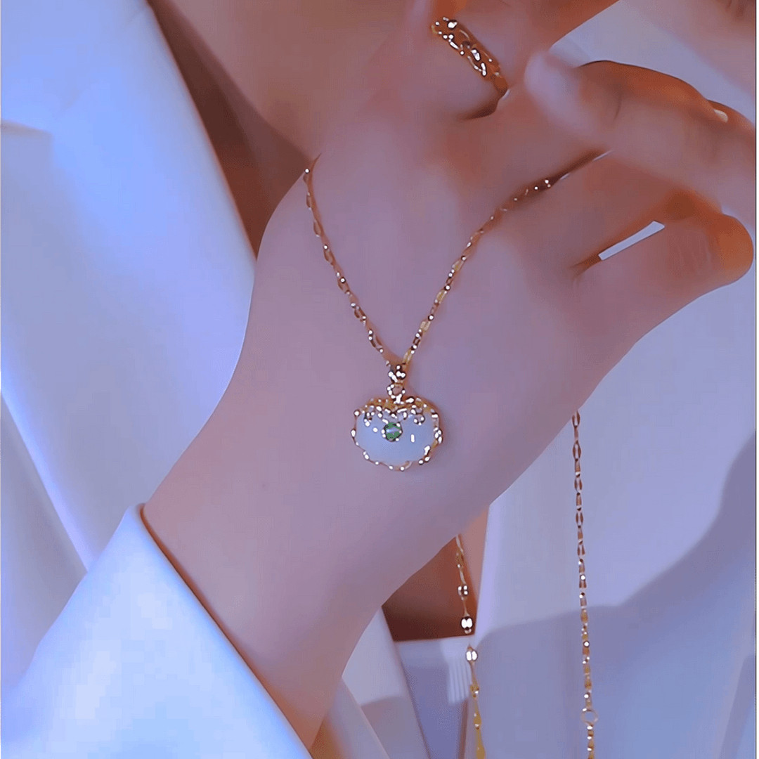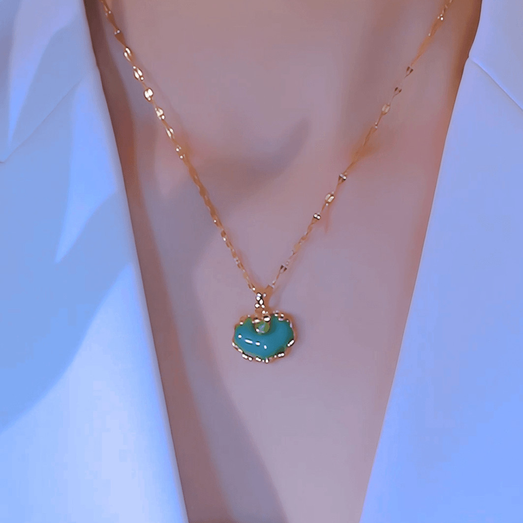 钛钢项链国潮新款绿色祥云吊坠项链轻奢气质精致复古时尚女锁骨链
