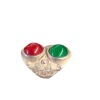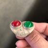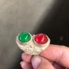 批发复古阳绿色翠玉戒指 藏银镶嵌男款可伸缩绿色玉戒指一件代发