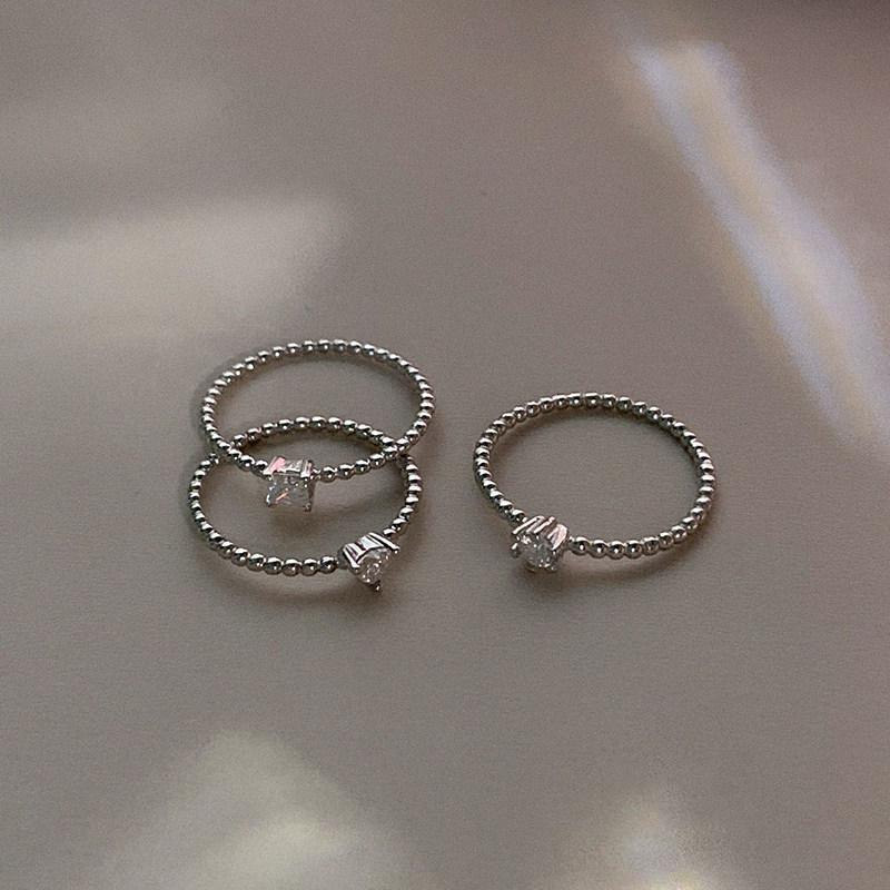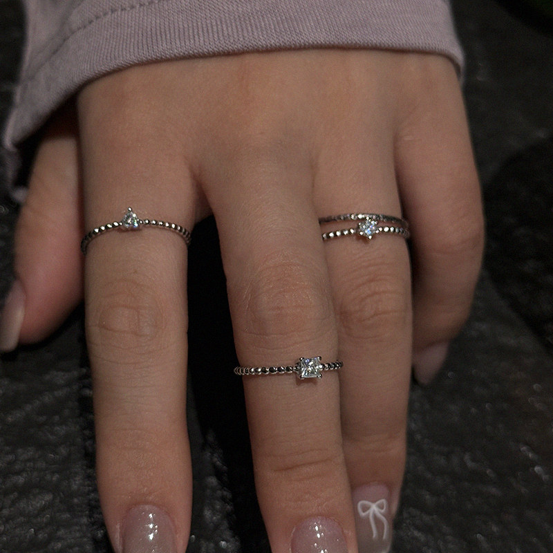 LLab s925银简约爱心/方形/圆形莫桑钻单钻素圈细戒指组合叠戴