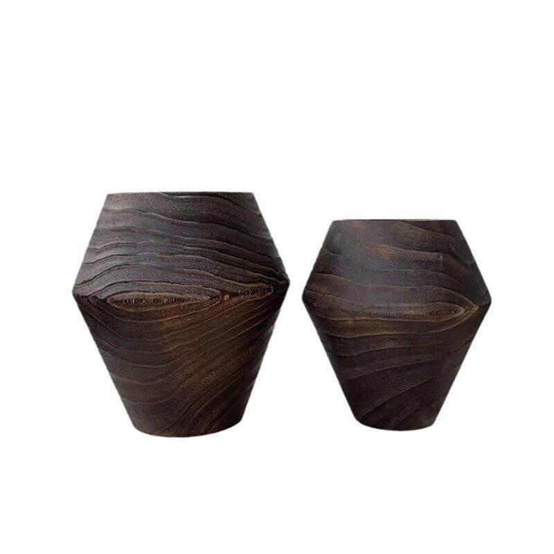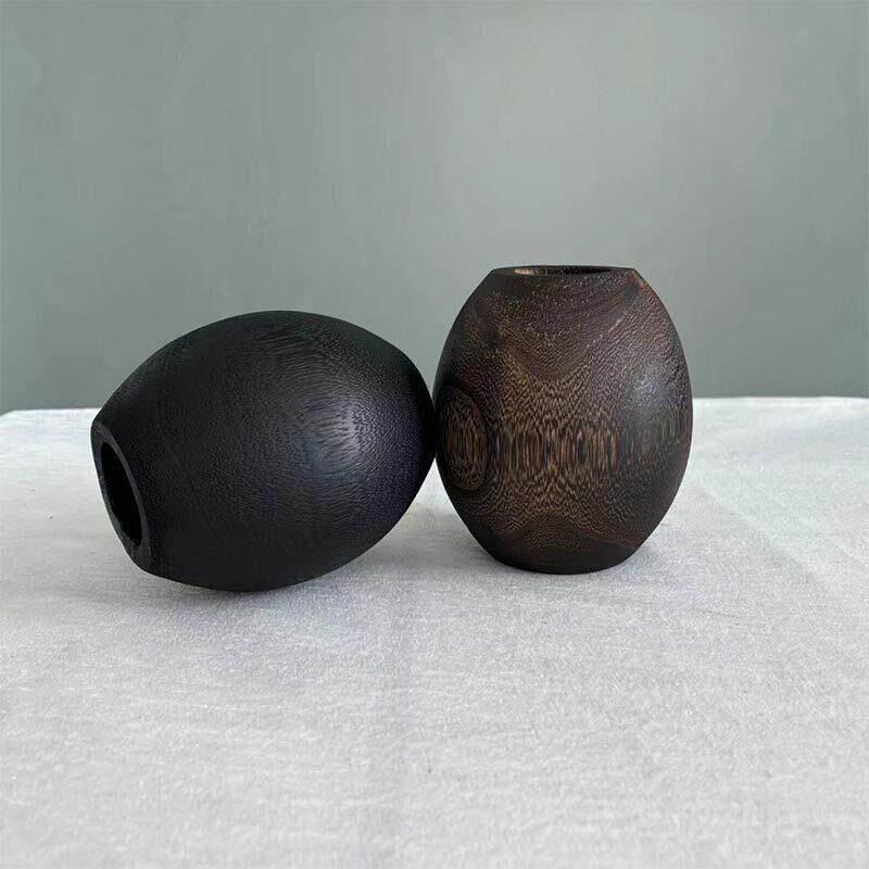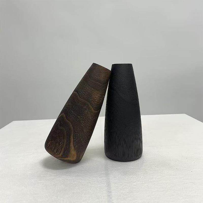 新中式复古怀旧实木碳化色黑色原木小花瓶摆件样板间酒店民宿装饰