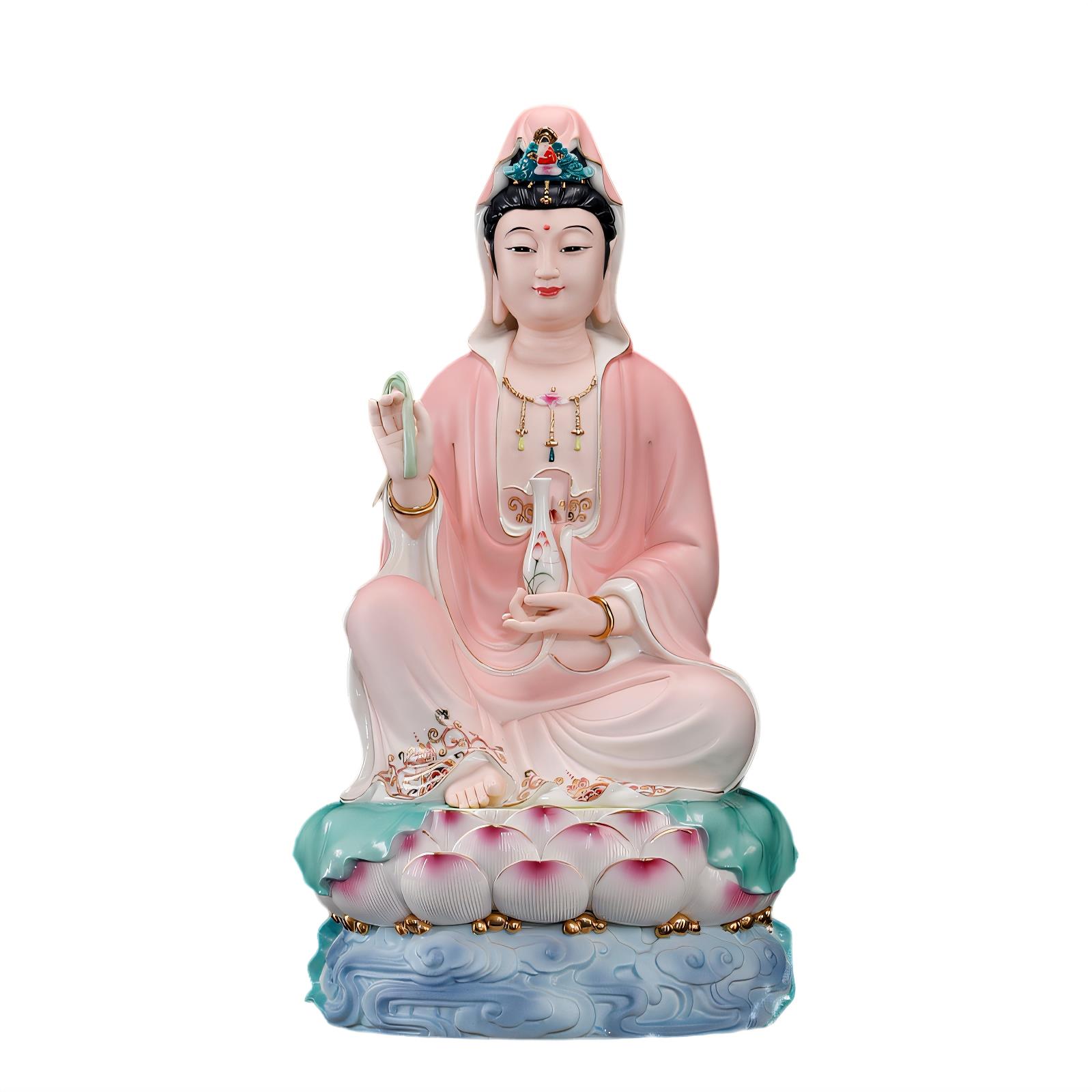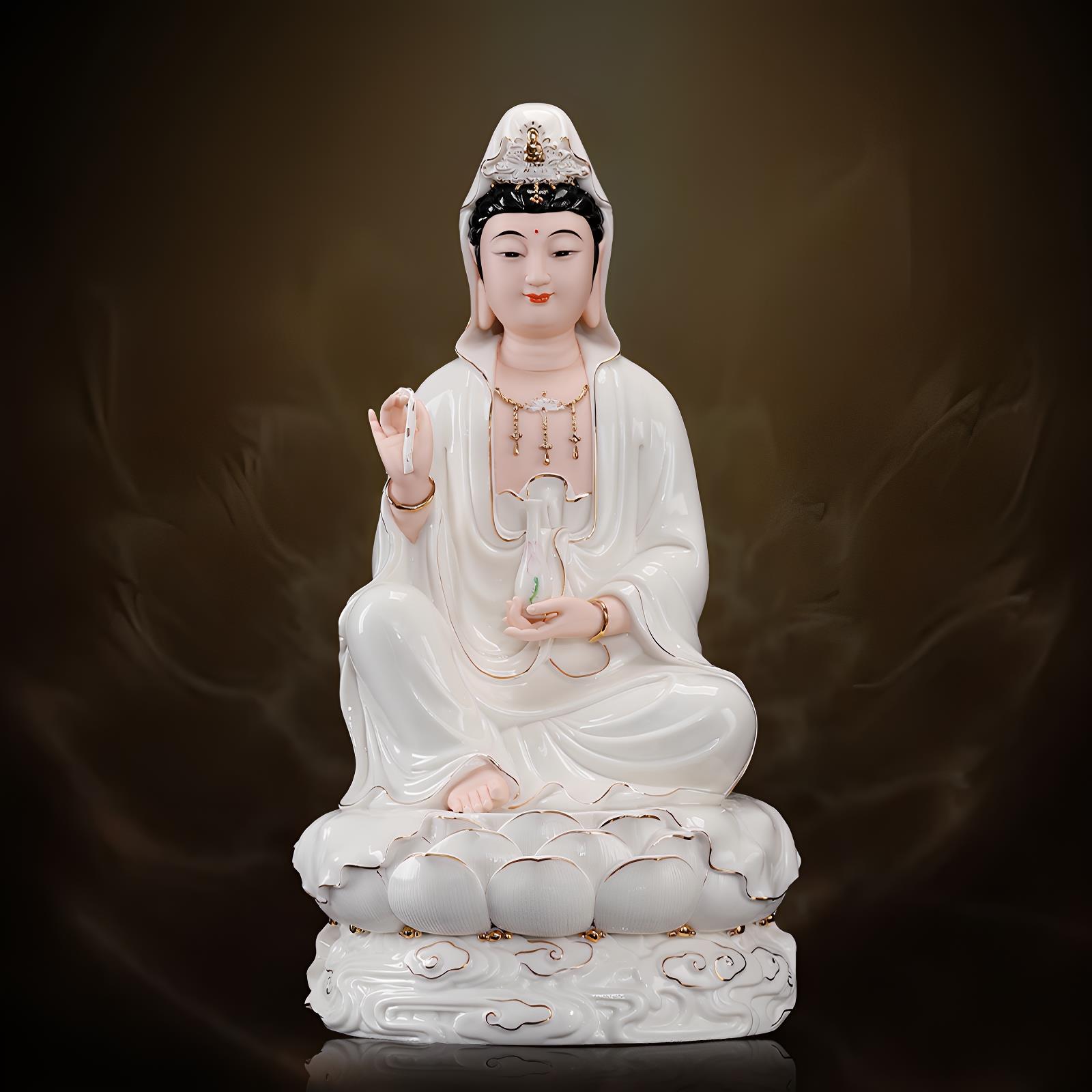 瓷之印 陶瓷南海观世音菩萨佛像家用供奉单脚观音像客厅佛堂摆件