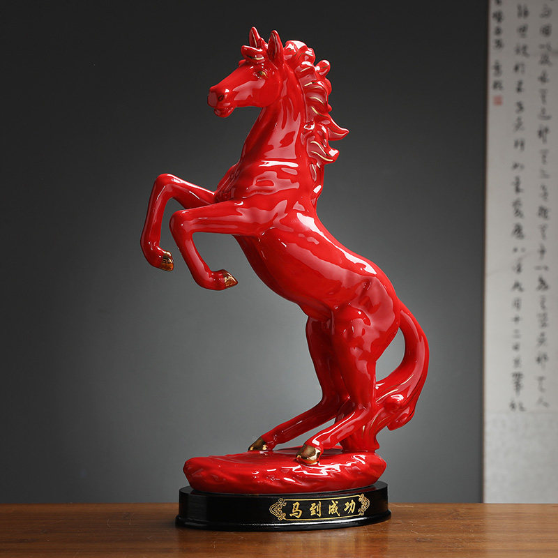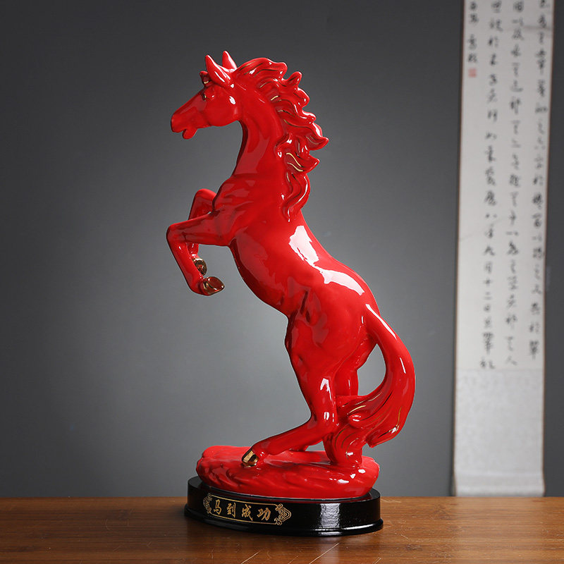 极速马到成功摆件红色陶瓷马办公室家居装饰创意桌面礼品生肖马工