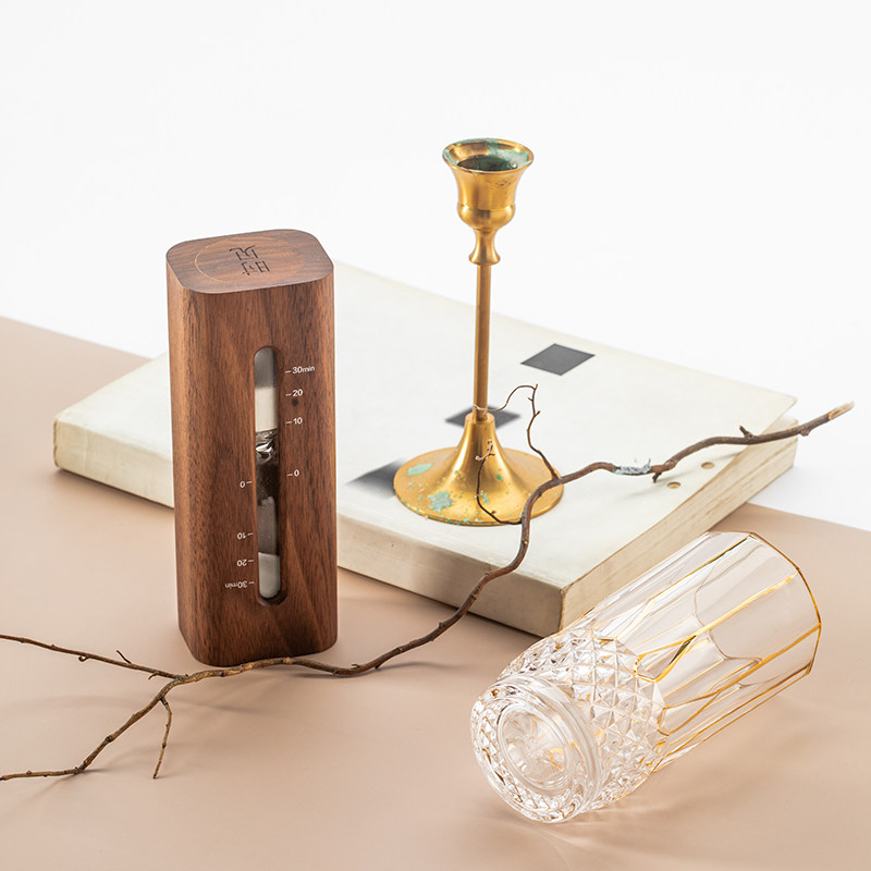 马鹿沙漏计时器30分钟礼物v定制logo刻字办公桌摆件桌面实木防摔