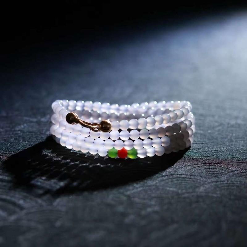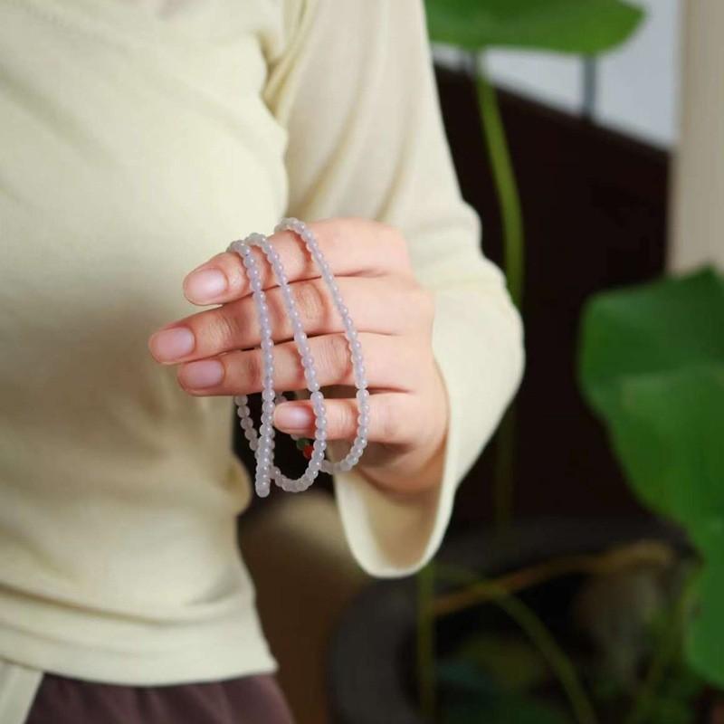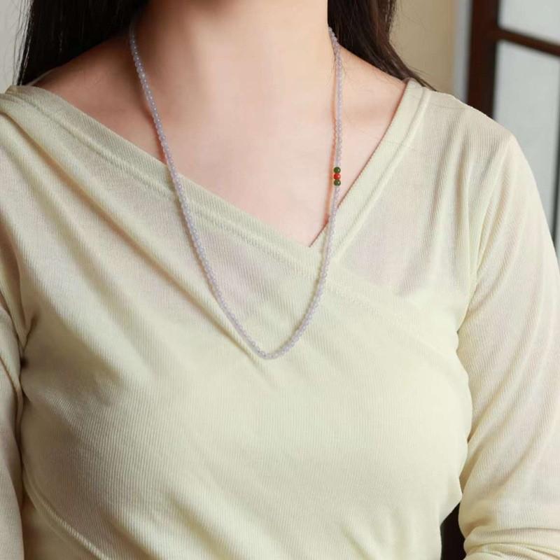 天然新疆和田玉玉器供应链青海料老料冰烟紫色玉石多圈珠链多用款