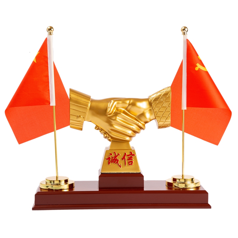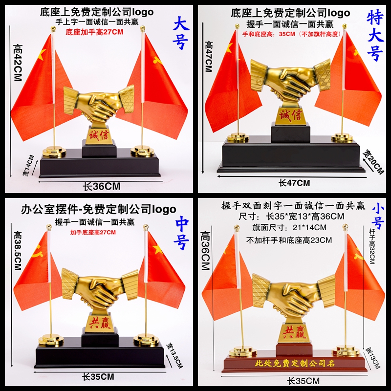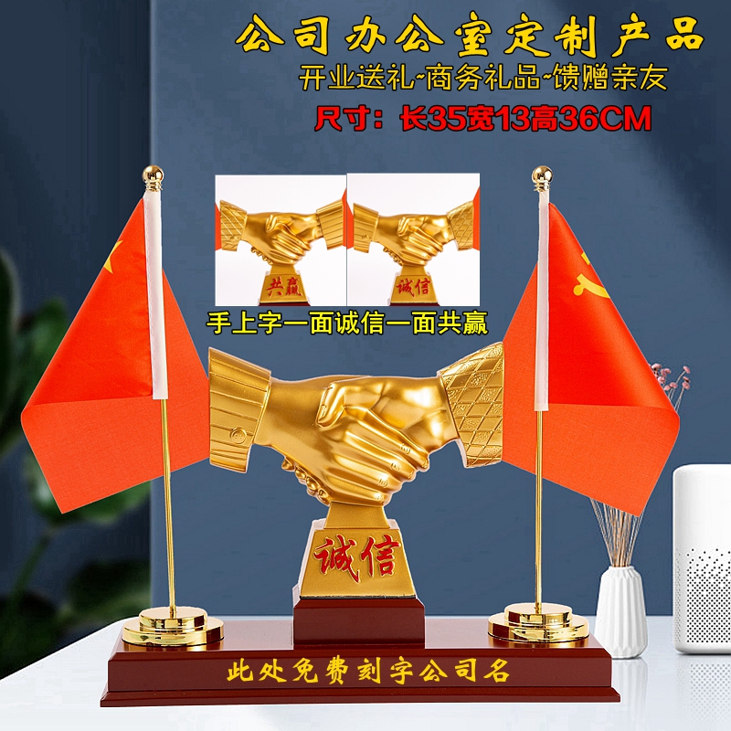 导办公室桌面摆件握手大号店铺收银台M前台装饰开业商务礼品