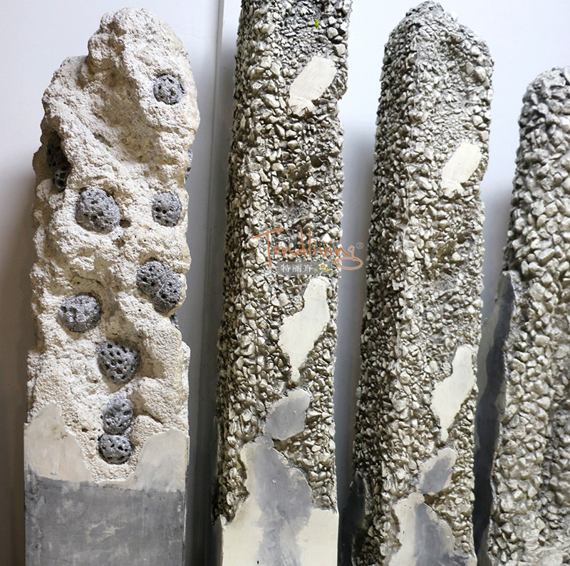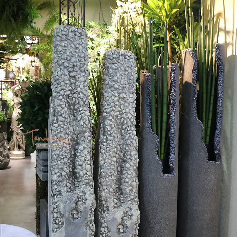 FRP玻璃钢仿碎渣石水泥灰色落地四方圆形高立柱艺术雕塑景观装饰