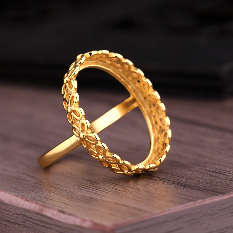 S925纯银戒指空托女款花边戒指托镶嵌蜜蜡琥珀戒托 12.5*17 15*21