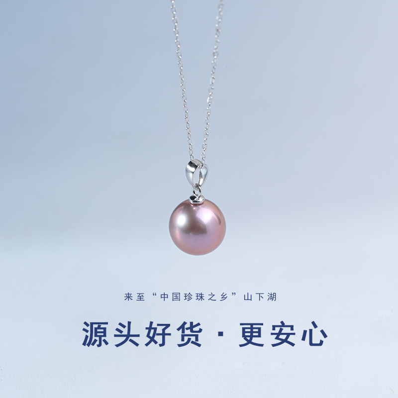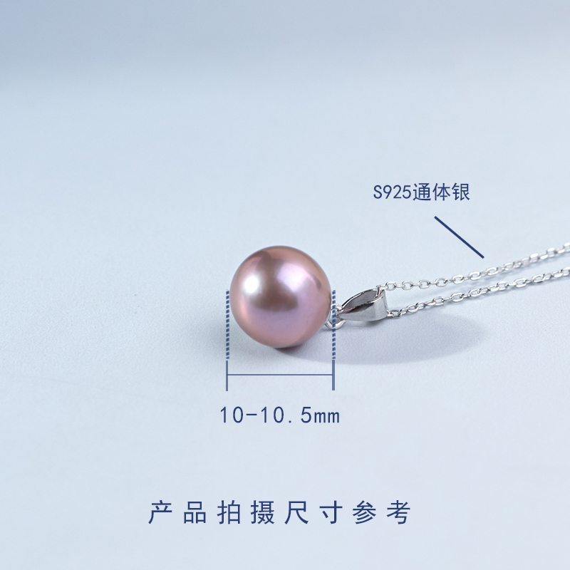 正圆紫色天然淡水大珍珠项链12-13mm浙江诸暨山下湖爱迪生S925银