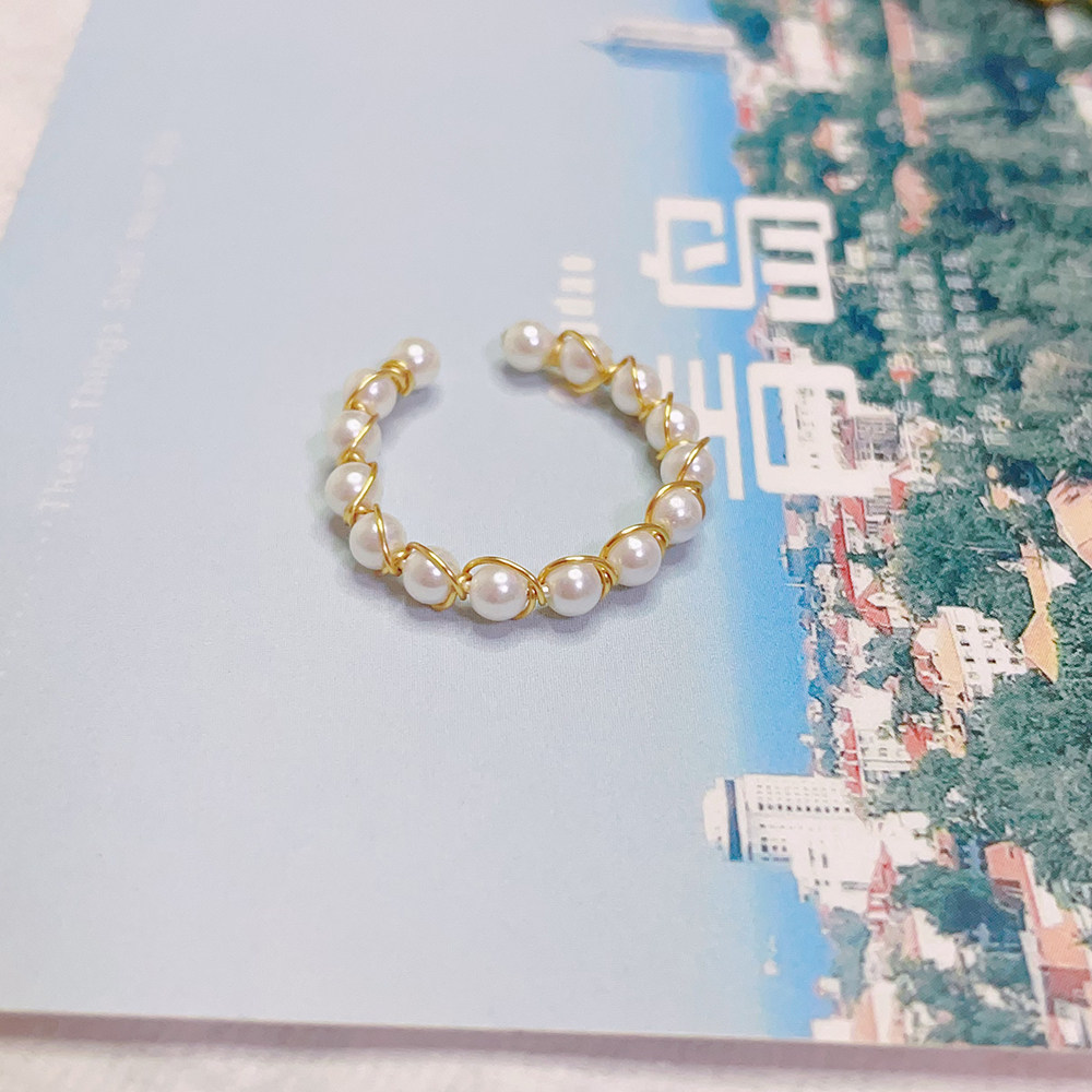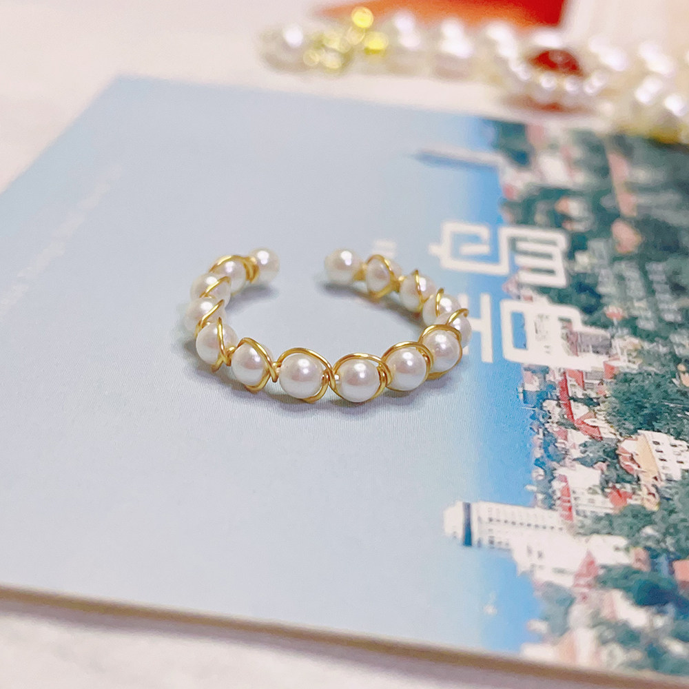 时尚个性天然贝壳珍珠戒指女 小众设计高级感气质 开口戒指可调节
