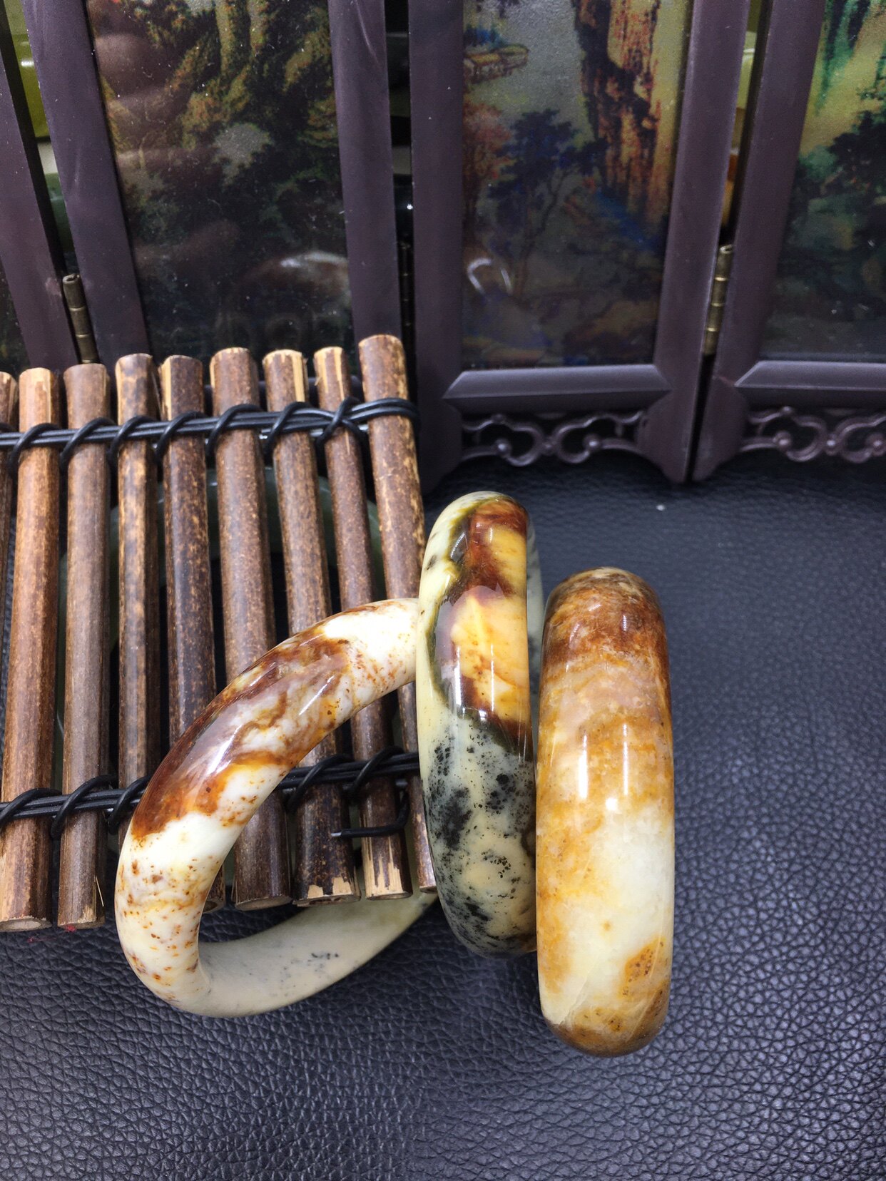 天然岫玉花料手镯 红色花玉 。 蓝色花玉手镯正品a货