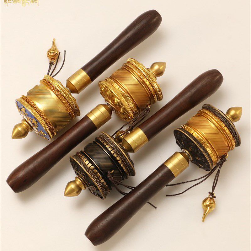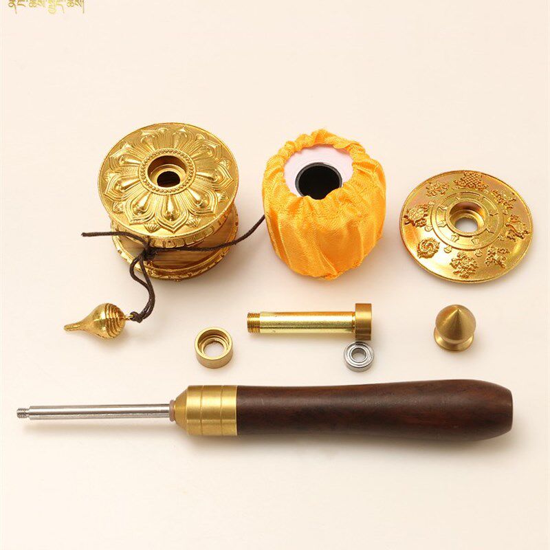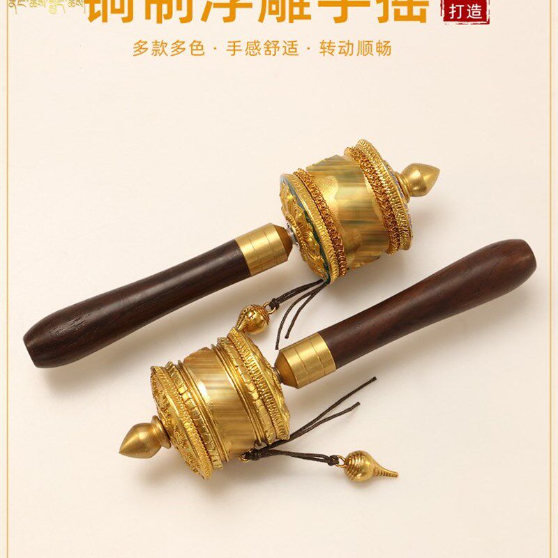 藏式手操金桶六字咒转s轮转简经桶绿度母藏式手操金转轮小铜