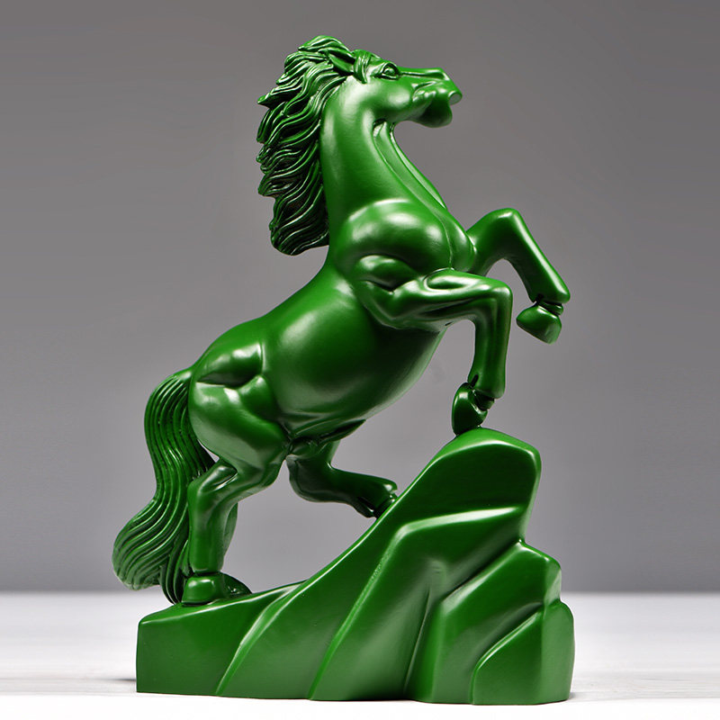 绿色木马摆件马到成功饰品工艺品木马摆件家居实木质雕刻桌面装饰