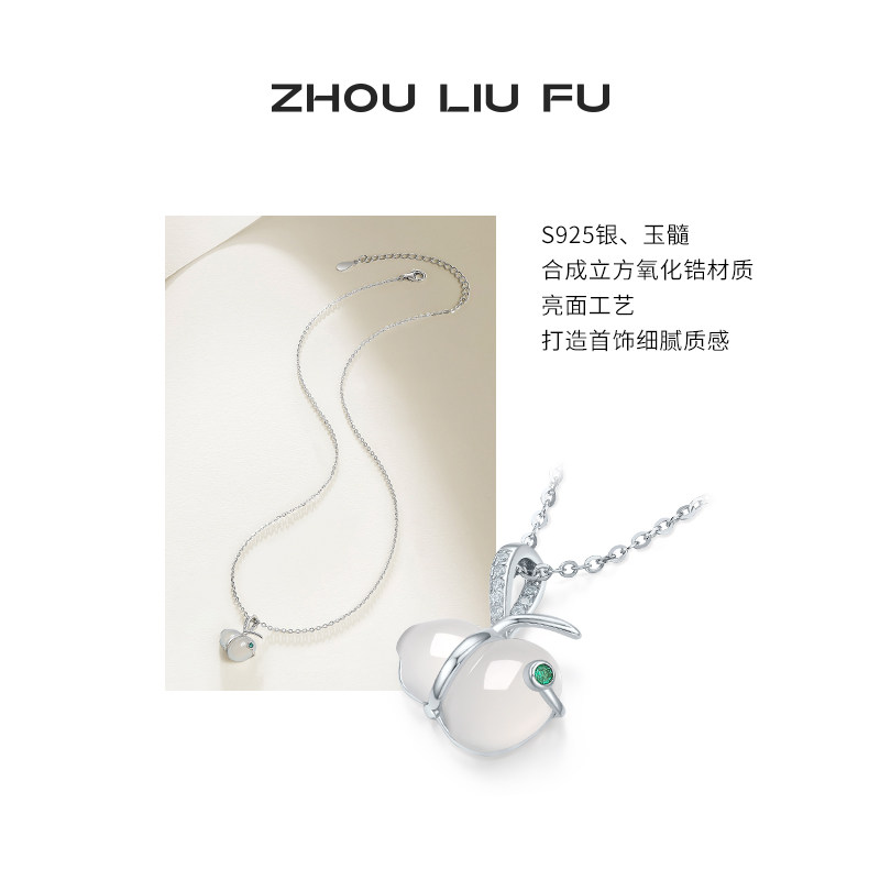 周六福冰透葫芦项链女款白玉福禄玉髓链坠优雅节日礼物送女友