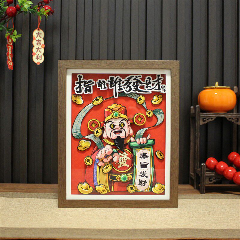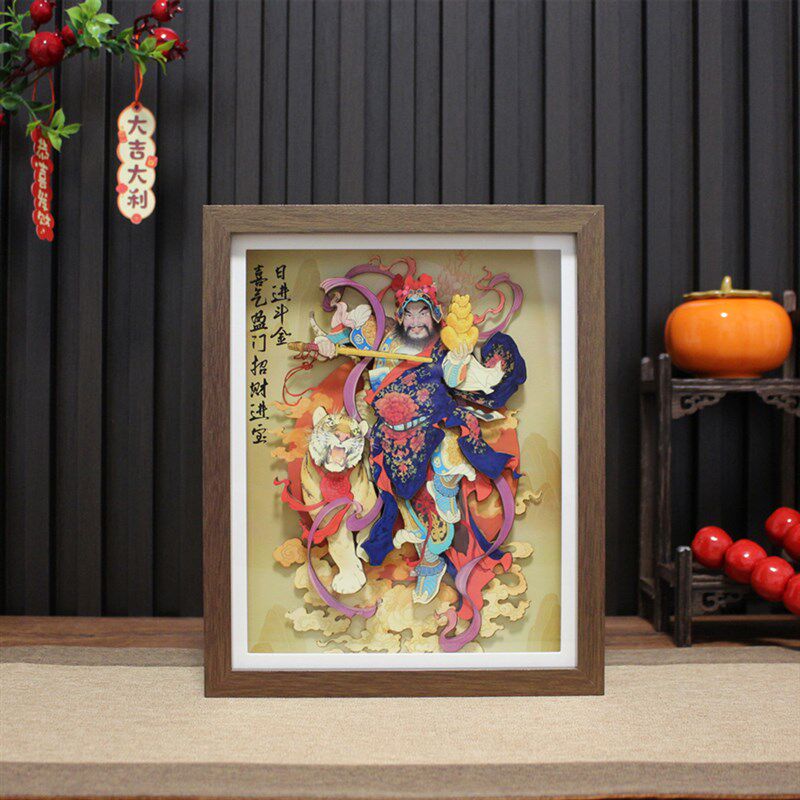 国潮剪纸文创五路财神桌面摆件乔迁开业送礼物可爱财神装饰画礼品