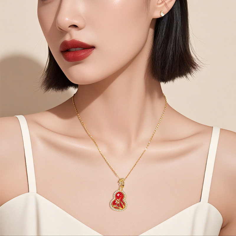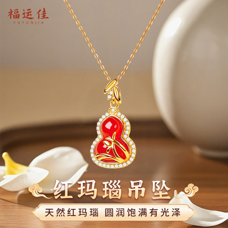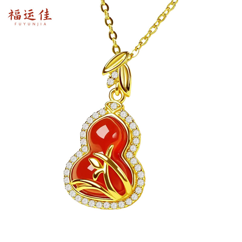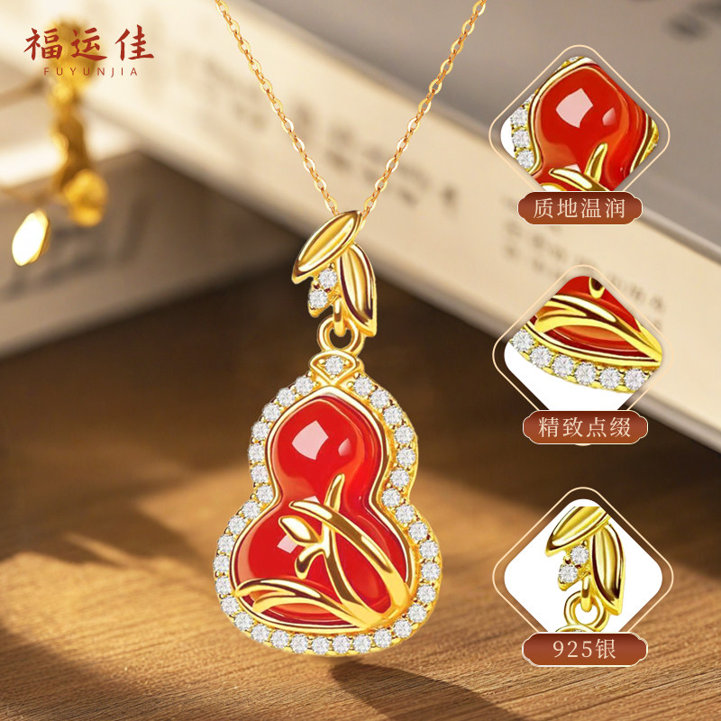 【福运佳】红玛瑙葫芦项链女款银吊坠中式古风轻奢颈链红色吊坠