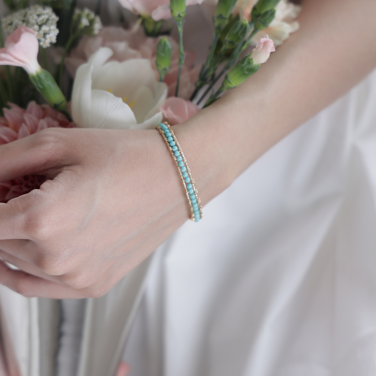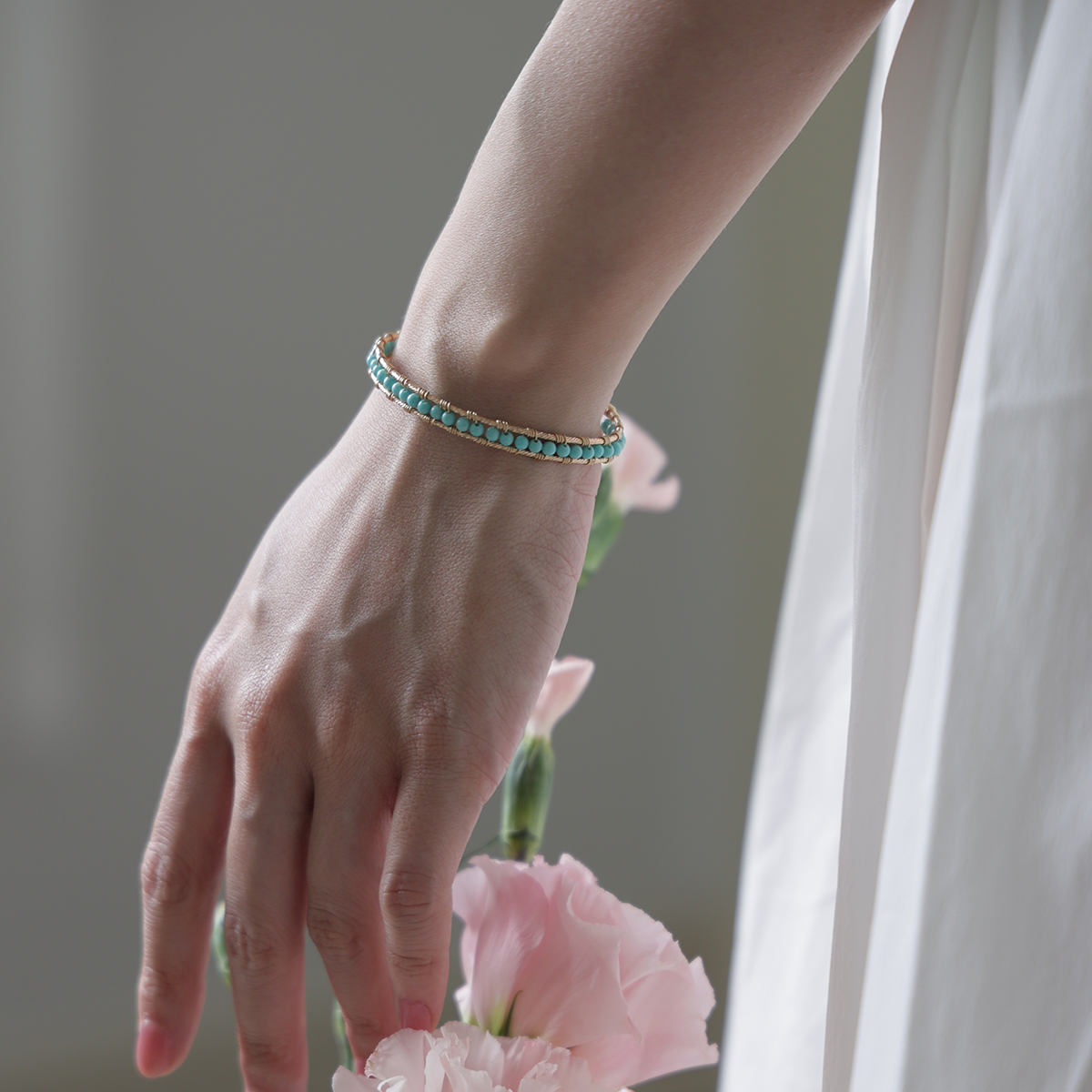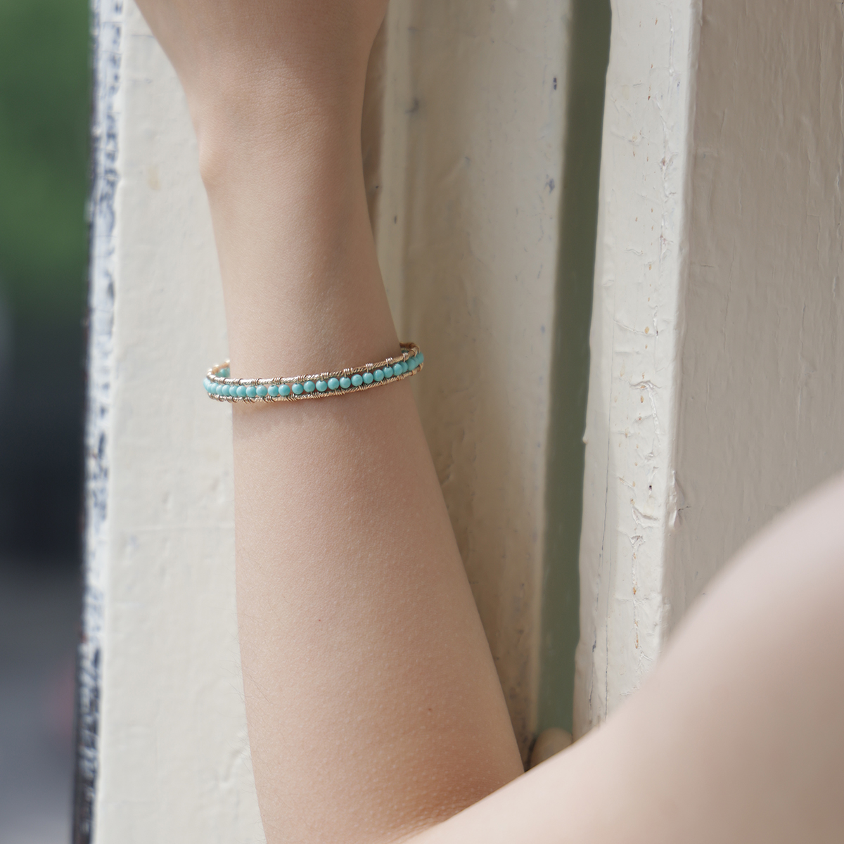 神仙单品 12月生辰石原创款14k包金绕线手工手镯原矿高瓷绿松石