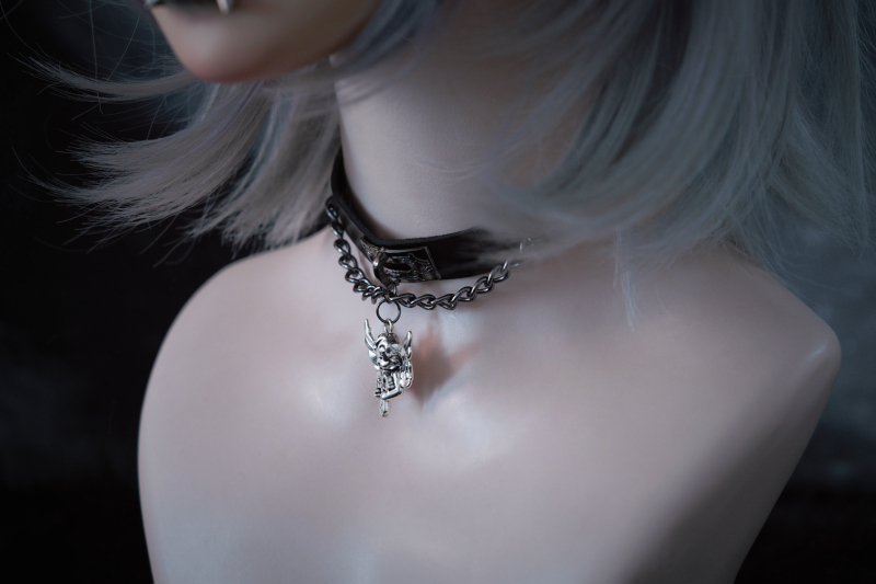 怪糖饰物集原创手工小天使吊坠仿皮颈链choker暗黑亚文化黑色