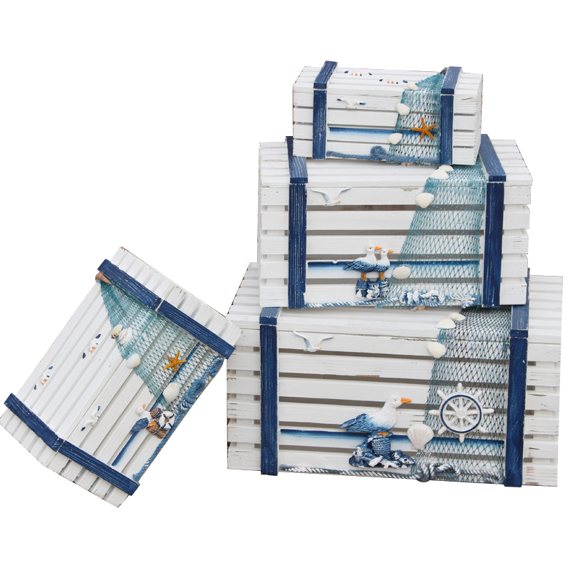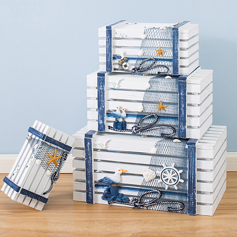 地中海家居装饰品收纳箱海洋实木箱F子木盒子橱窗布置酒吧道具摆