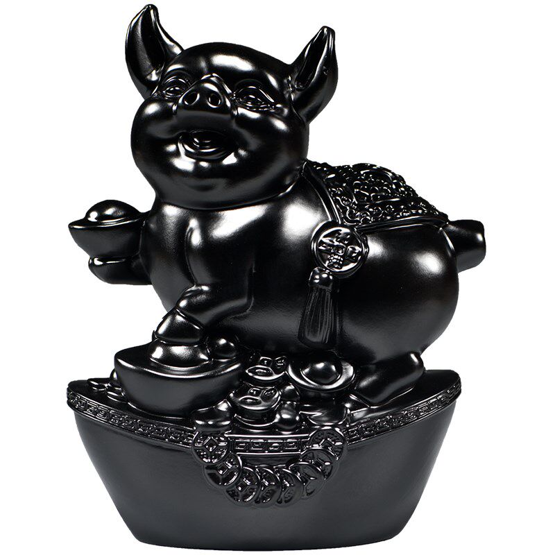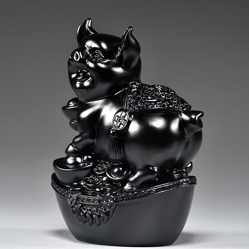 黑猪摆件实木质雕刻十二生肖黑色木头猪吉祥物客厅补角装饰工艺礼