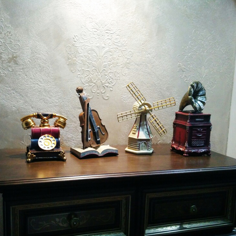 欧式复古摆件留声机创意家居客厅小摆设书柜装饰品
