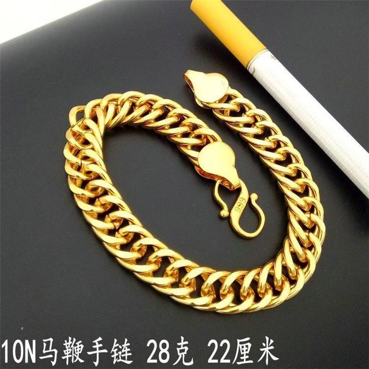 【官方正品】精品足马鞭老板手链金黄色福字头鱼骨链男女款