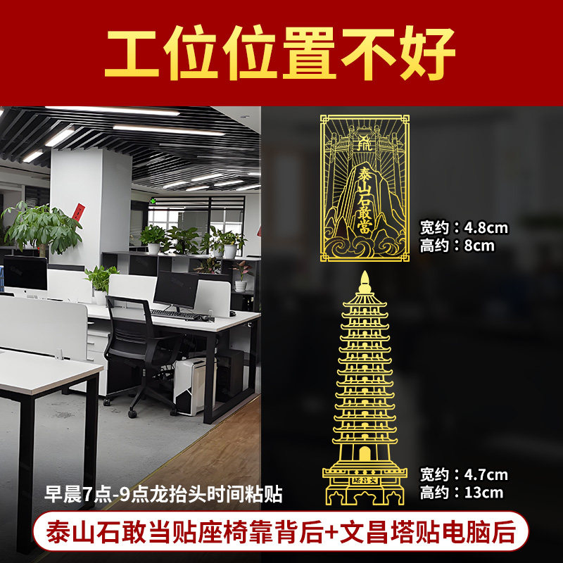办公室工位物件化解贴纸桌椅对门玄泰山学防小人风背后靠山水神器