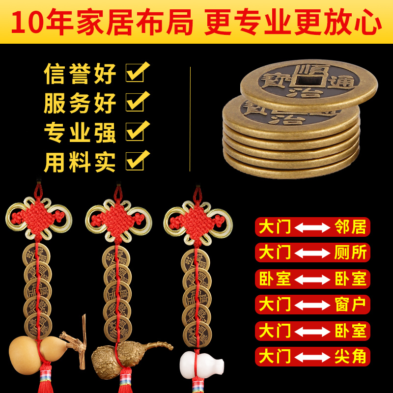 极速纯黄铜真品五帝钱葫芦挂件压门槛铜钱古币门对门X六帝钱挂饰