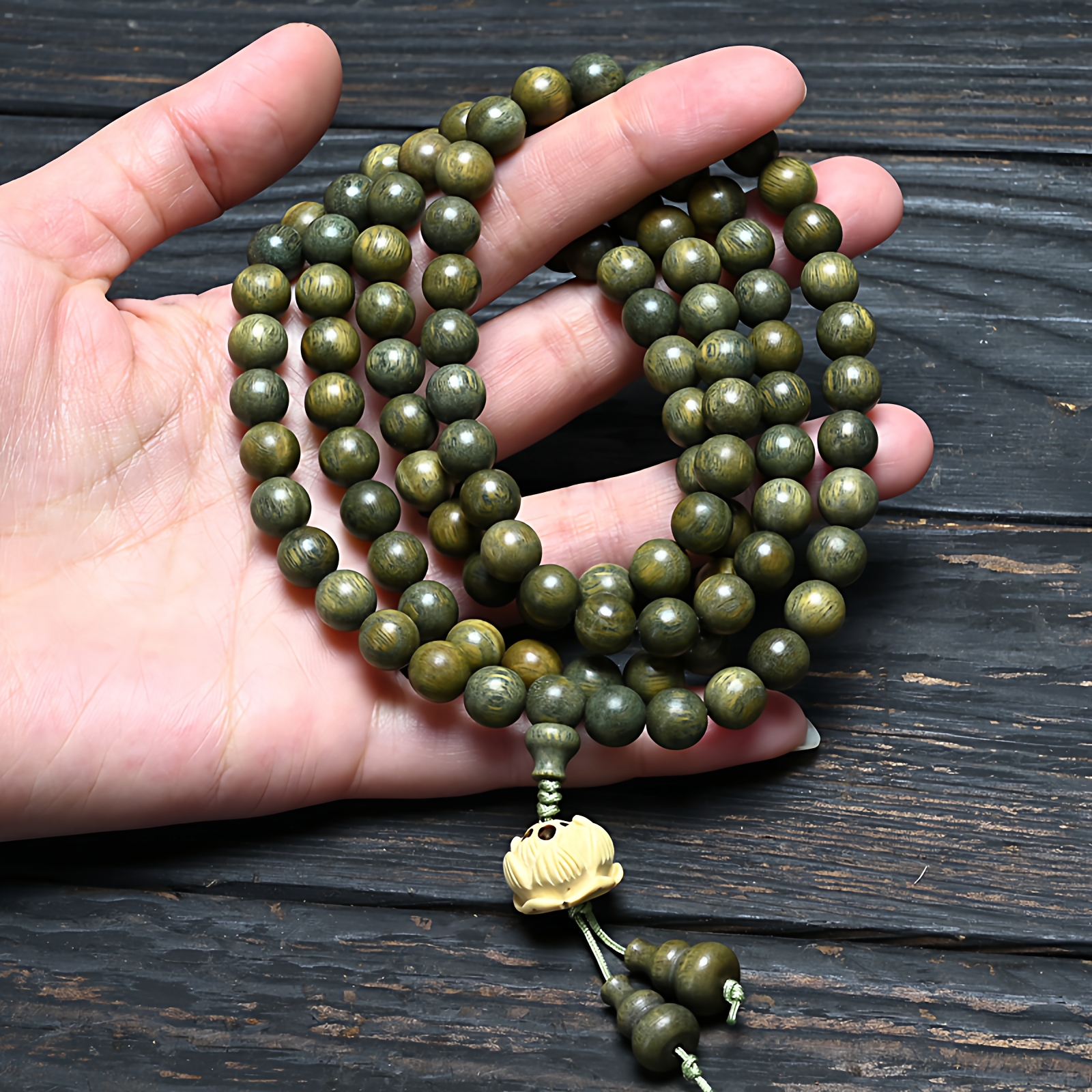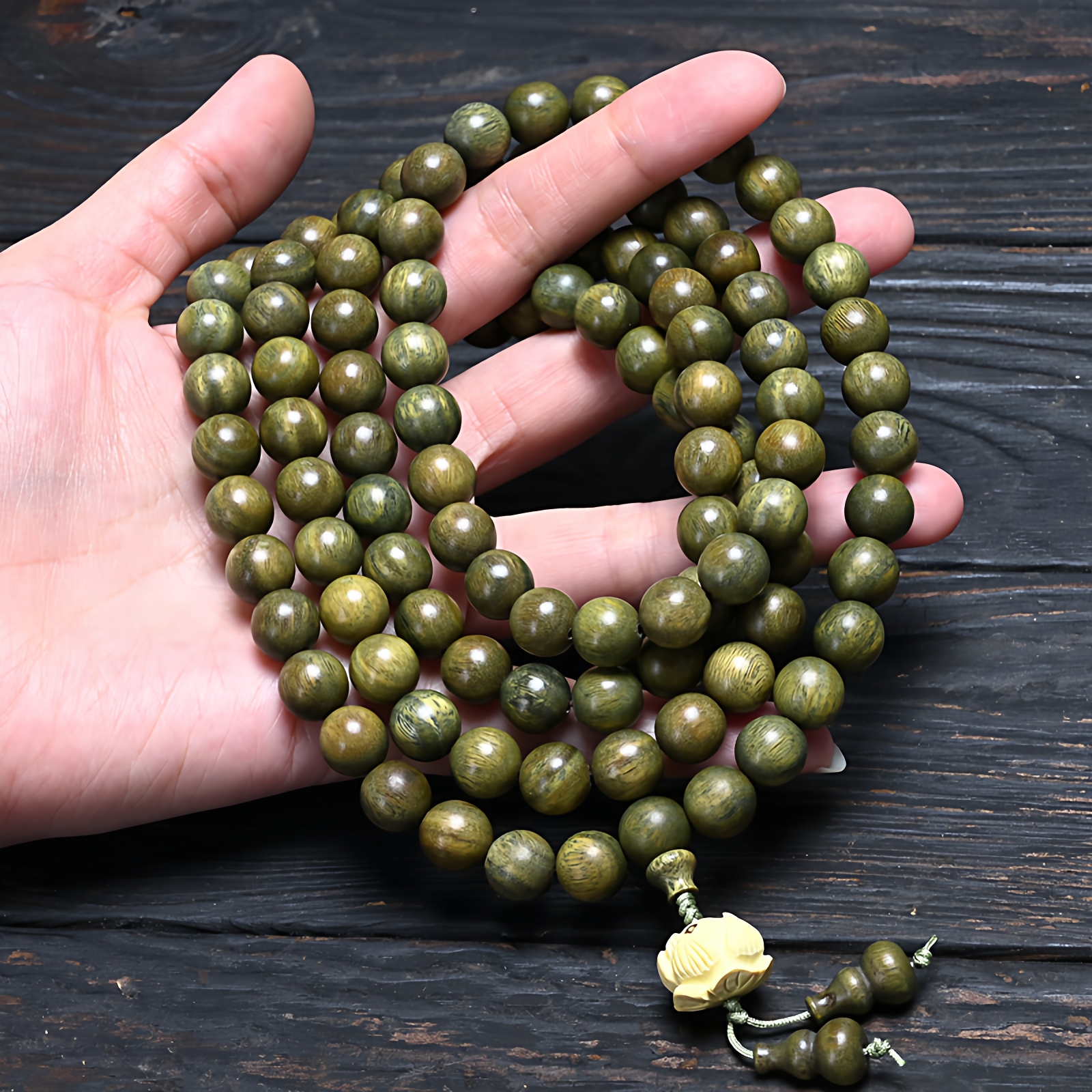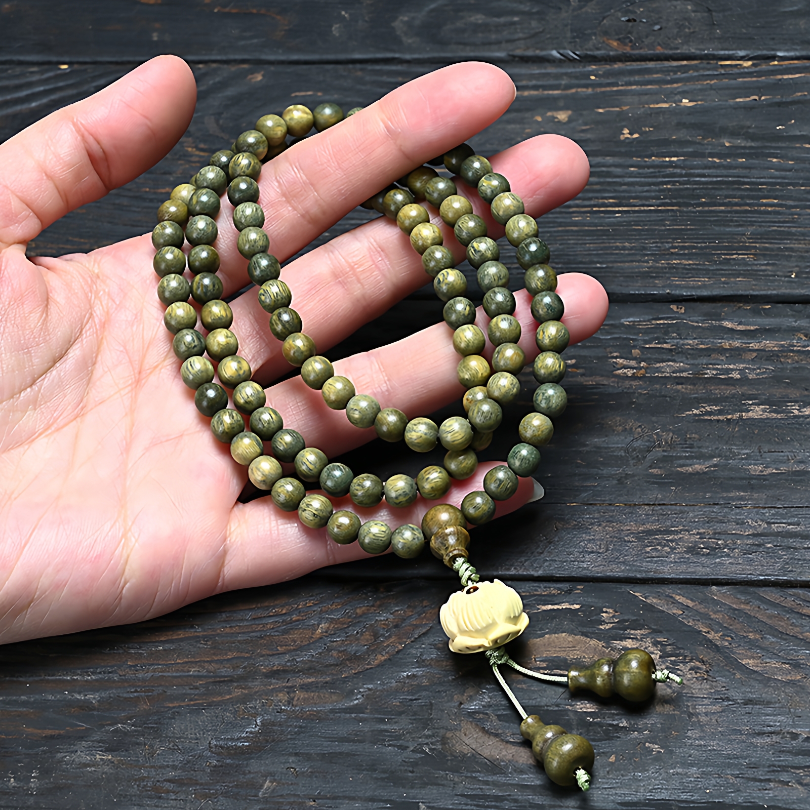天然正宗绿檀木佛珠手链运转檀香木108颗莲花男女士款厂家