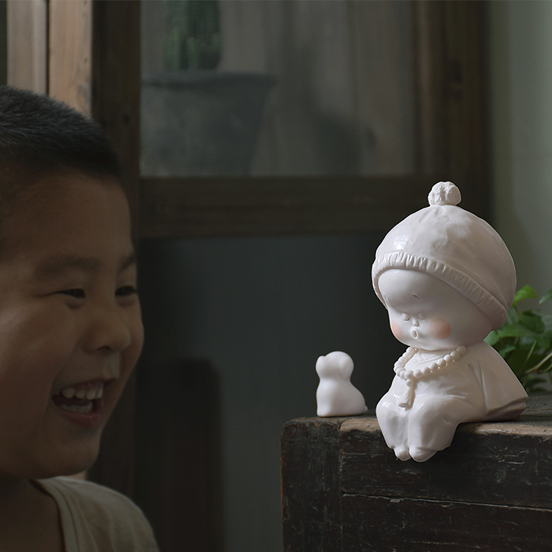 创意中式手工陶瓷人物小和尚桌面摆件小客厅书房办公室装饰品摆设