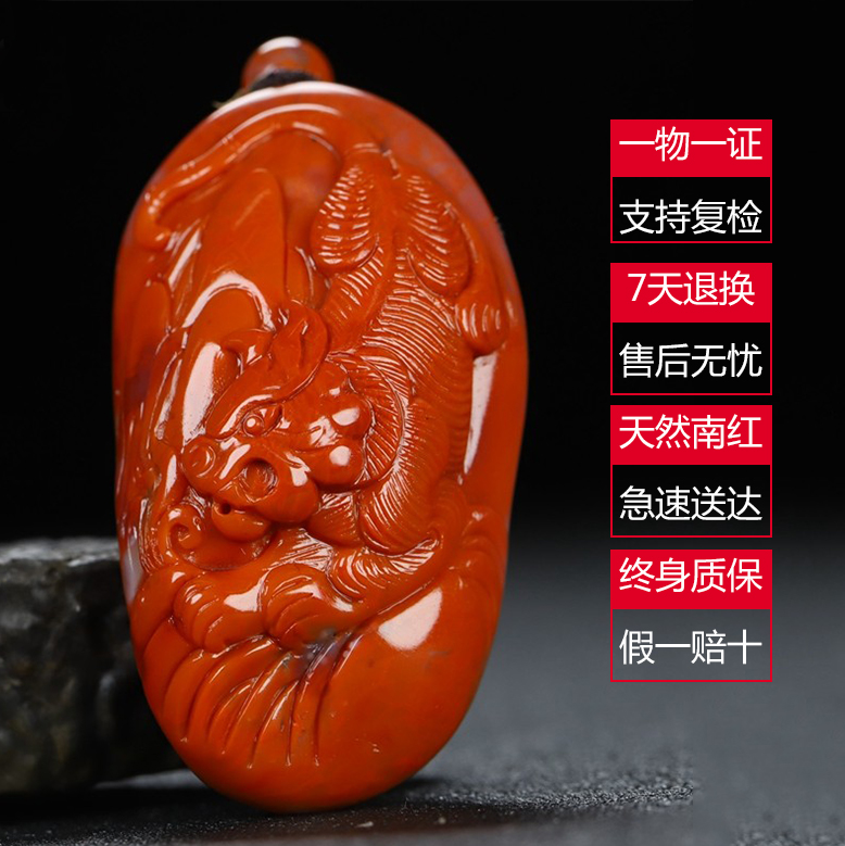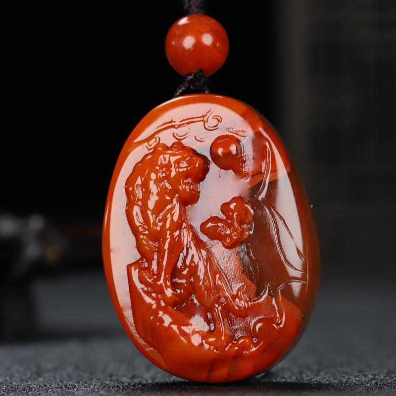 天然凉山保山南红玉玛瑙生肖老虎火焰纹男女儿童款原石雕刻吊坠