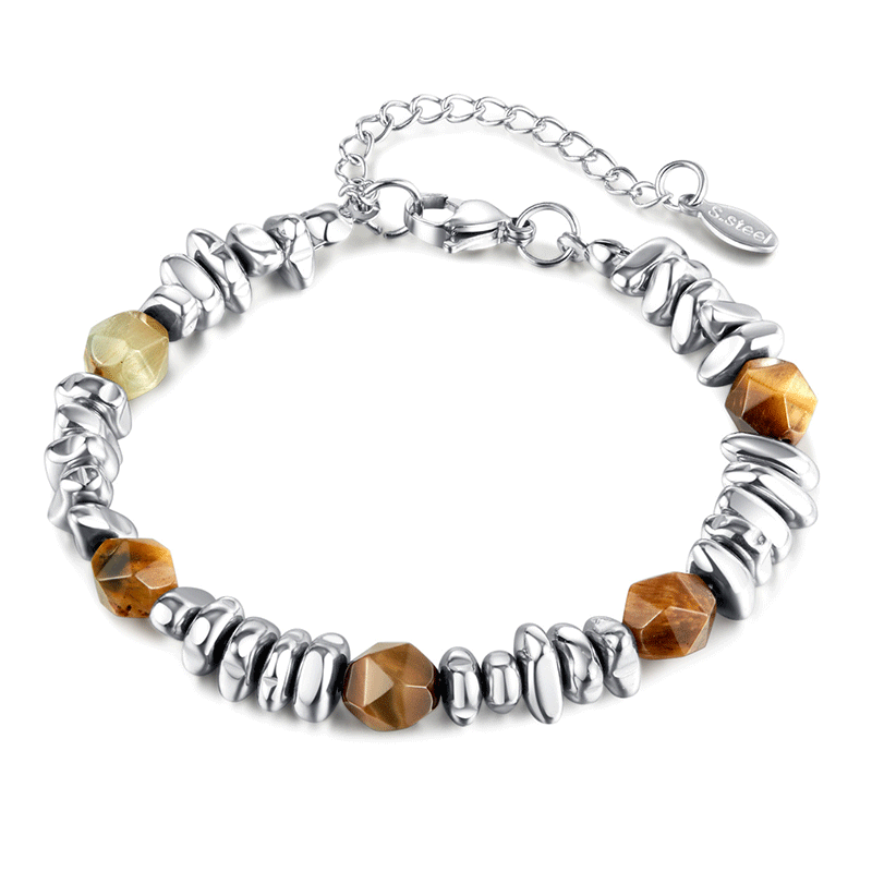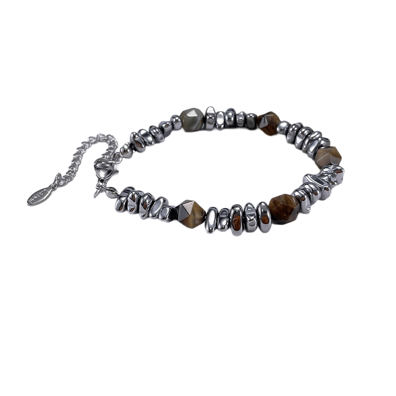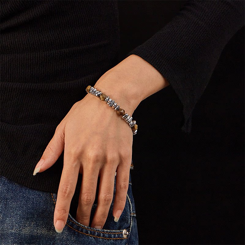 LUCKJAY 新中式碎银手链高级感虎眼石转运拼接可调节嘻哈男士手串