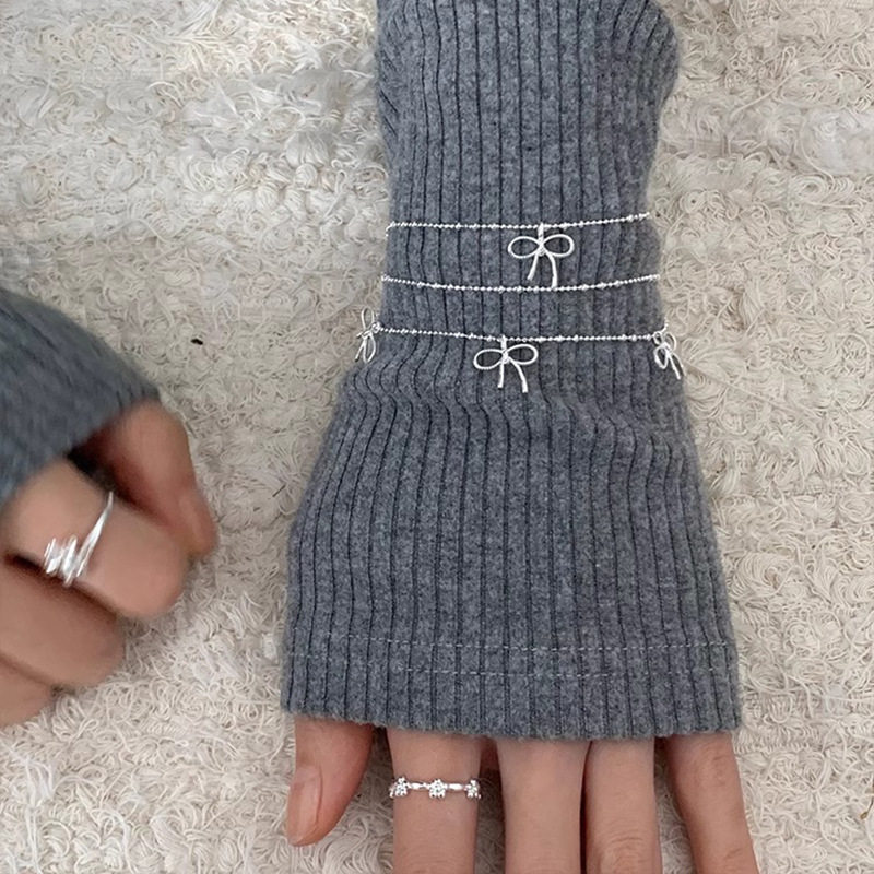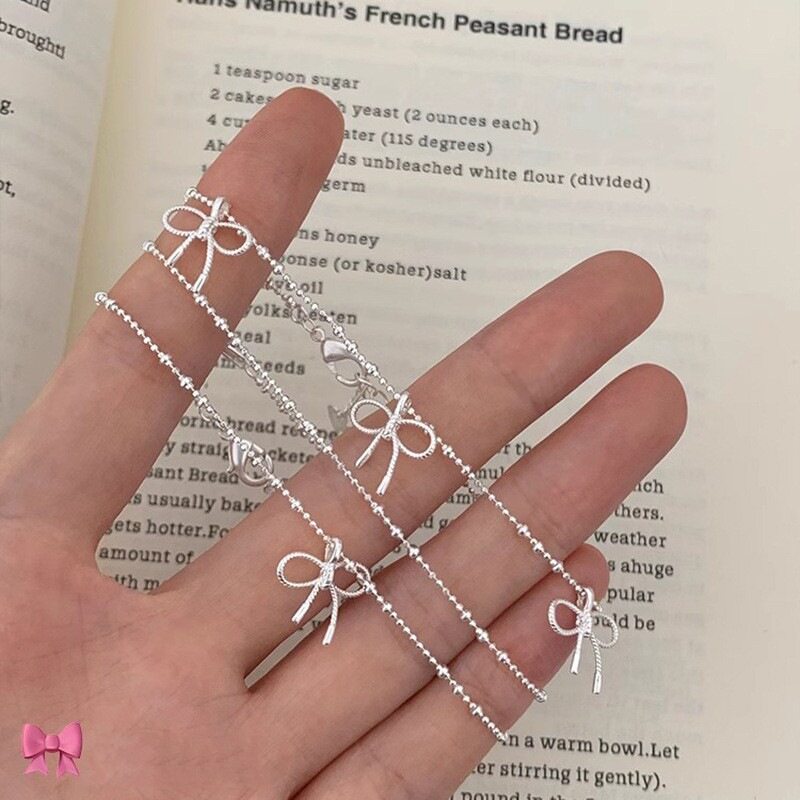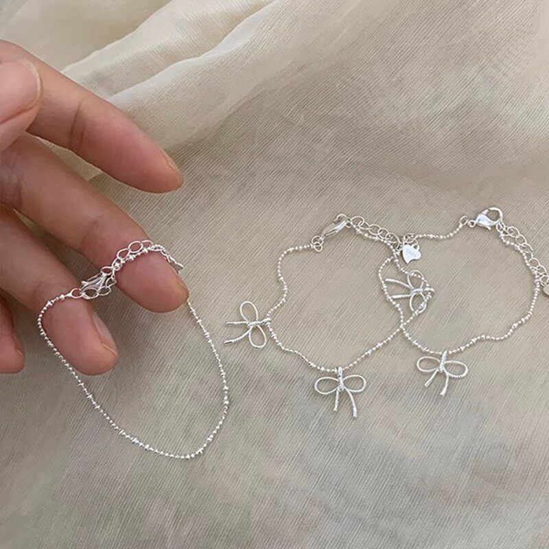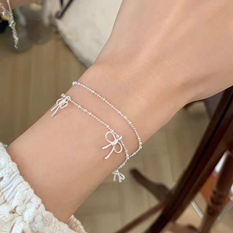 简约叠戴蝴蝶结手链女细链条百搭时尚甜酷S925镀银手环ins风手饰