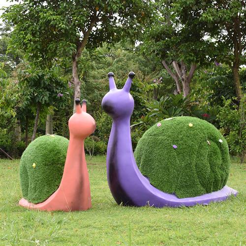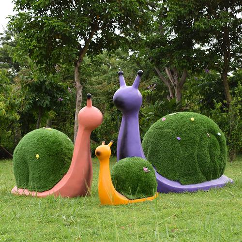 户外园林景观装饰摆件模拟动物卡通绿色植物蜗牛幼儿园公园玻璃纤