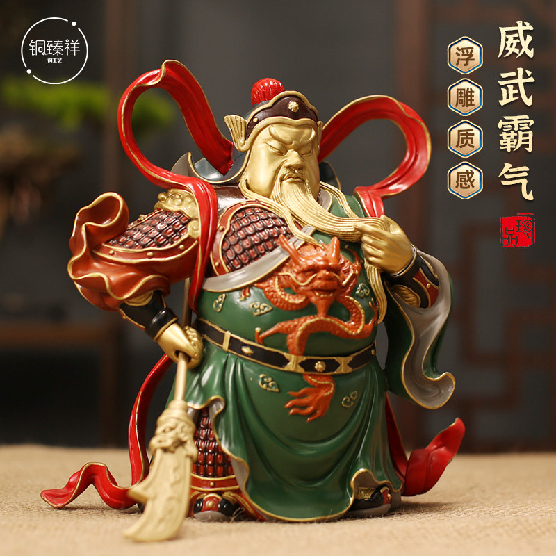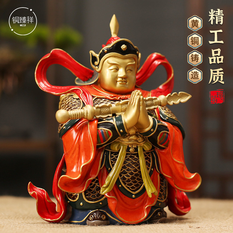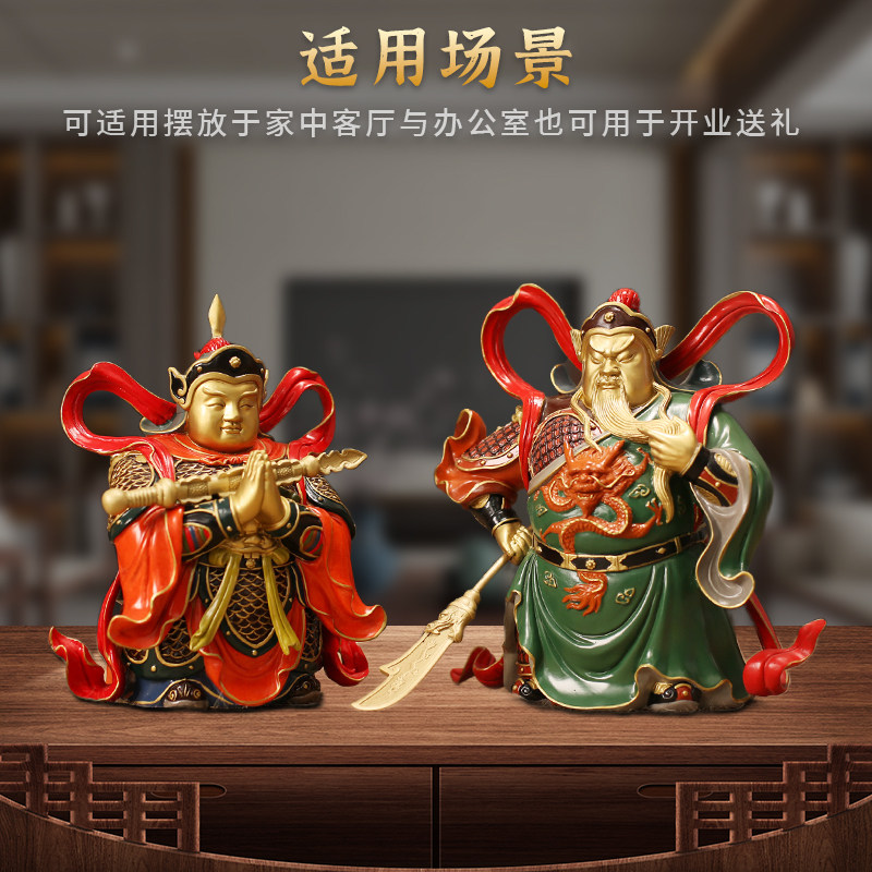 黄铜伽蓝菩萨左右佛像摆件护法关公韦陀像财神关公关二爷客厅玄关