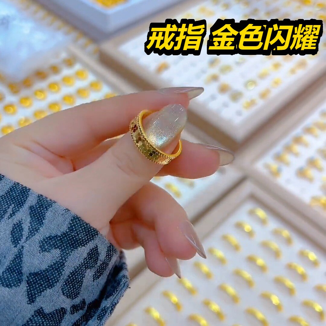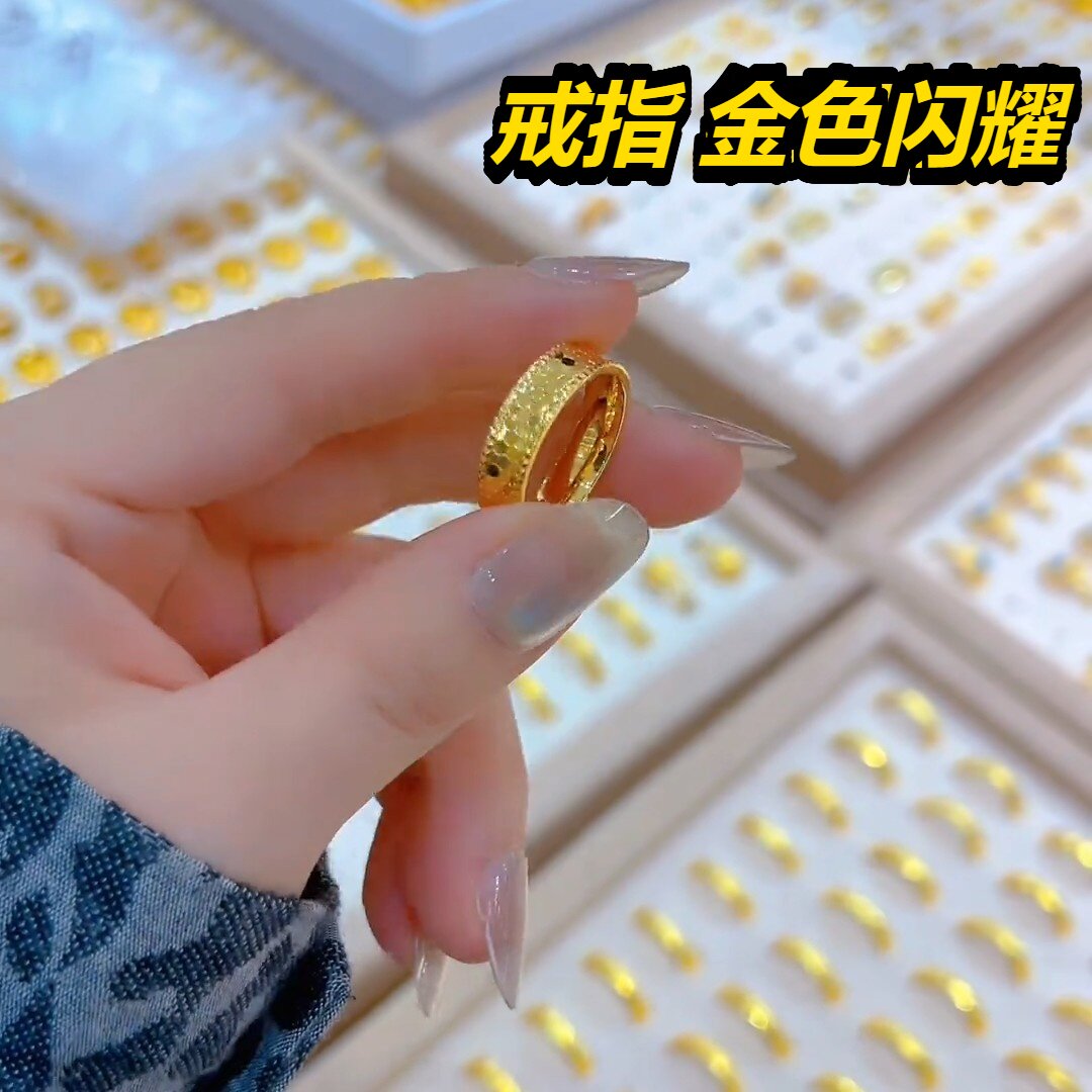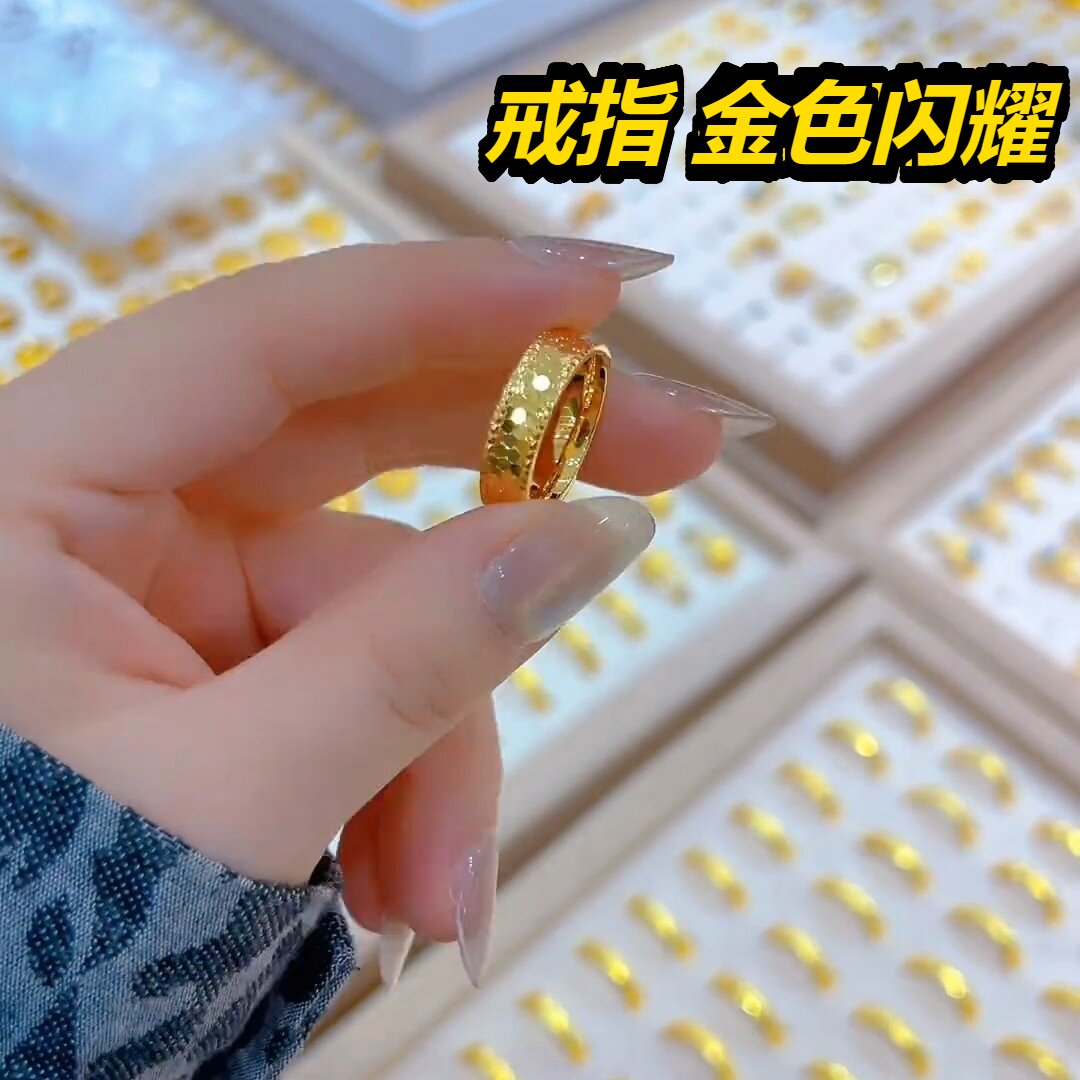 新款精品工艺金戒指情侣对戒男女满天星锤纹素圈指环送礼物2026