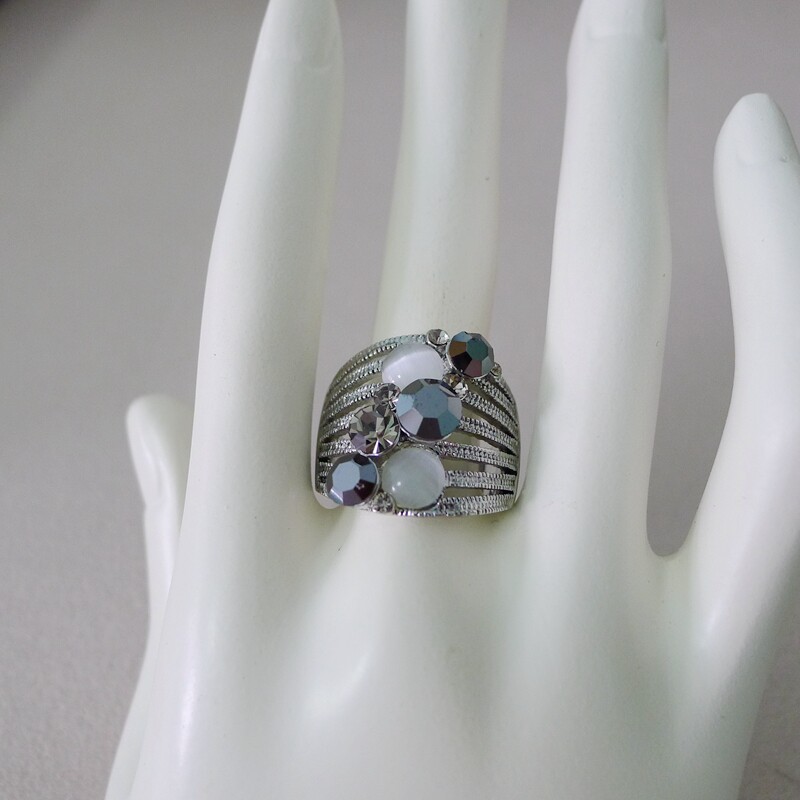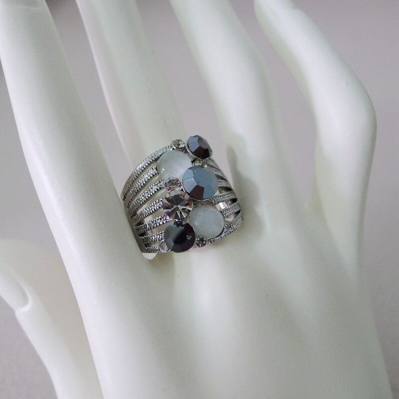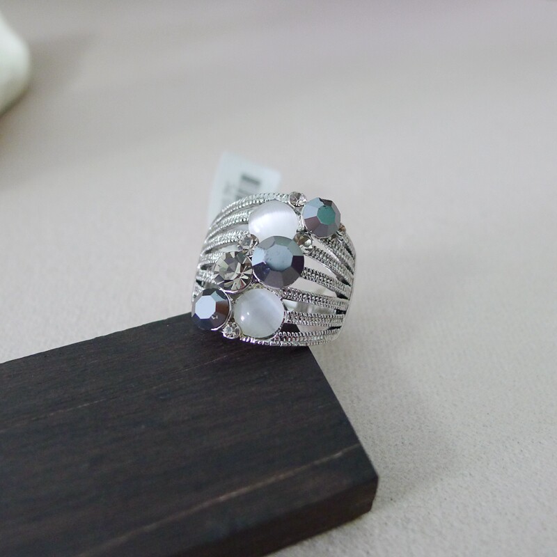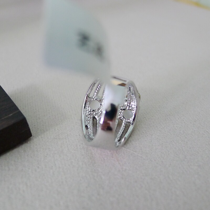 76B-27内径1.8CM18号灰色镶钻镂空宽戒面女士戒指