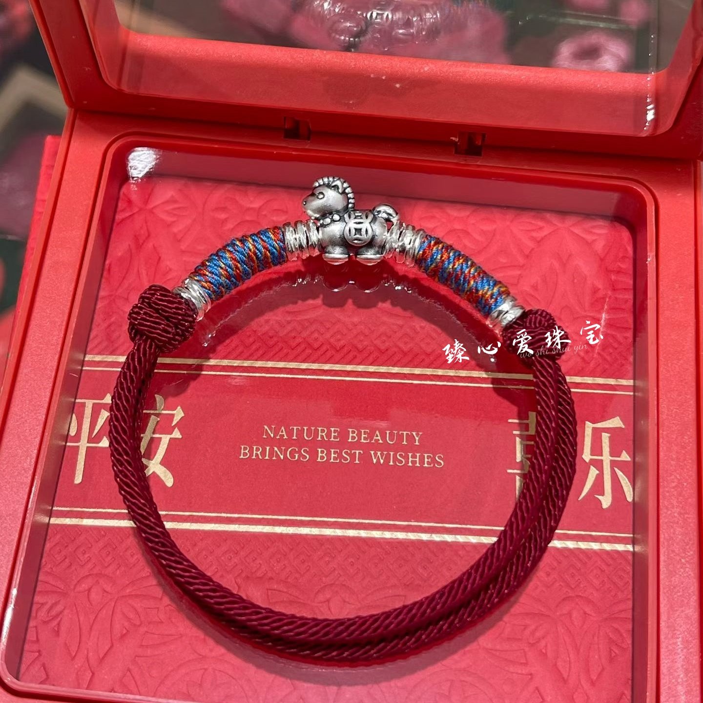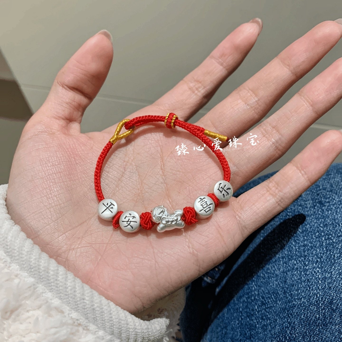 实心银坨盘缠手链纯足银小胖福生肖马新中式情侣手绳儿童女友闺蜜