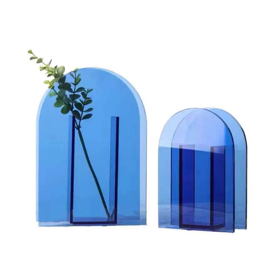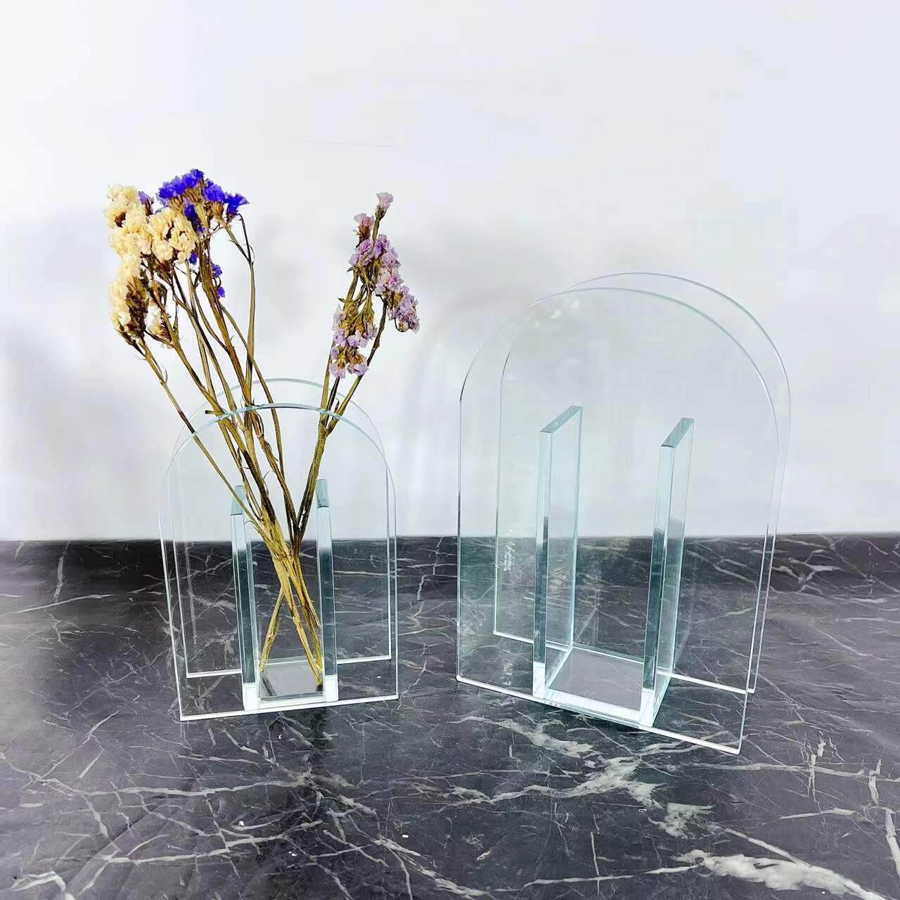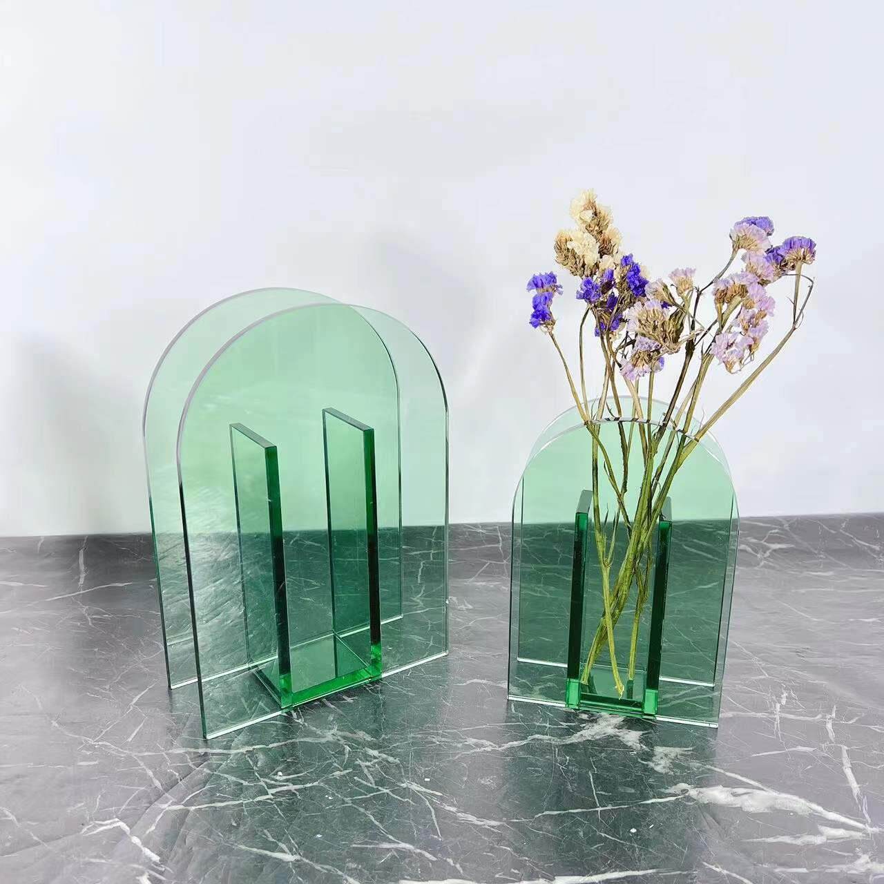 现代简约灰色插花玻璃花瓶 餐桌装饰花器家居桌面摆件客厅