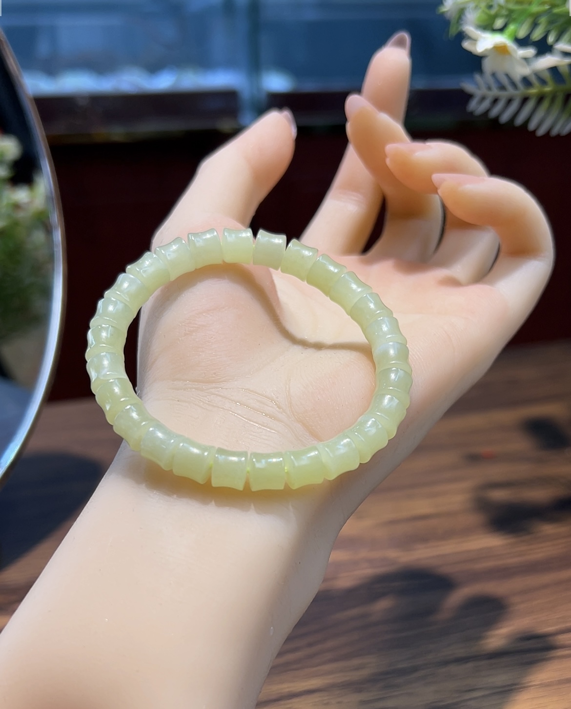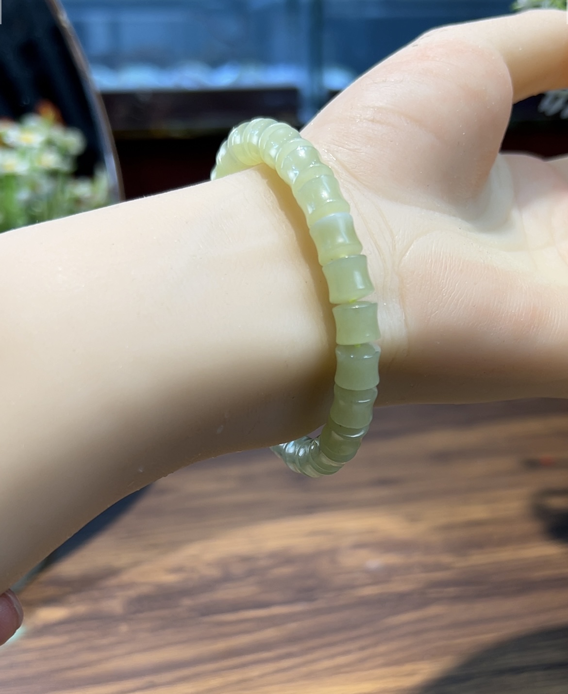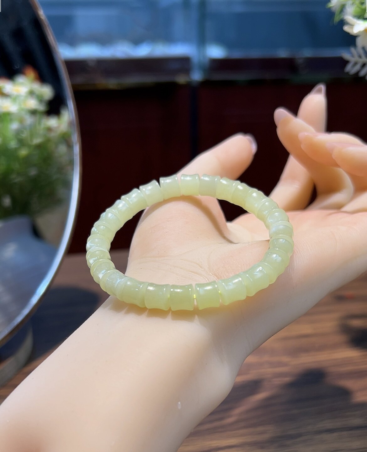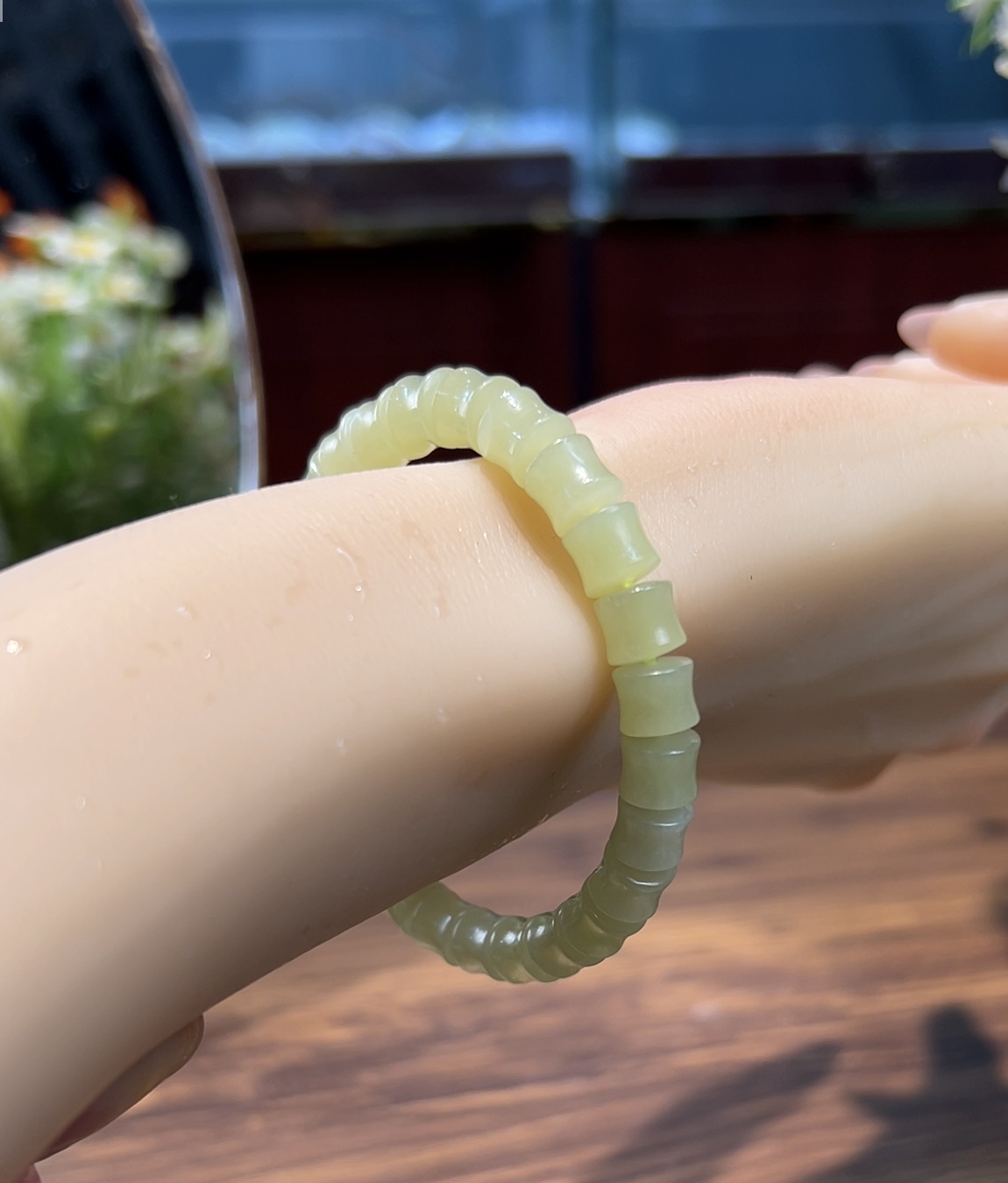 新疆直发正品和田玉若羌黄口竹节手链天然玉石老料手串7*8带证书