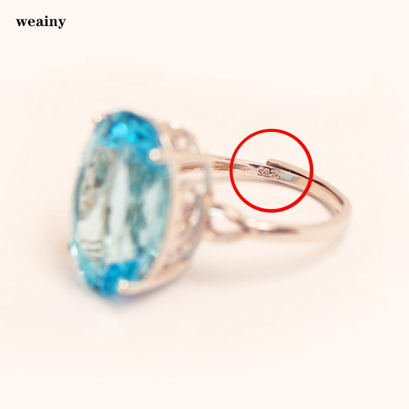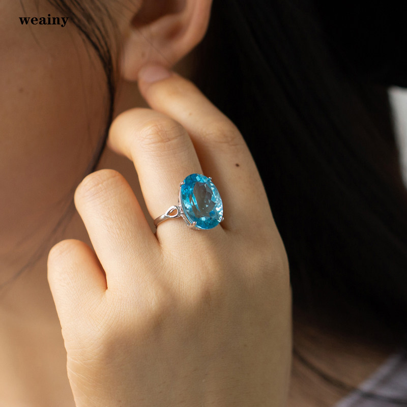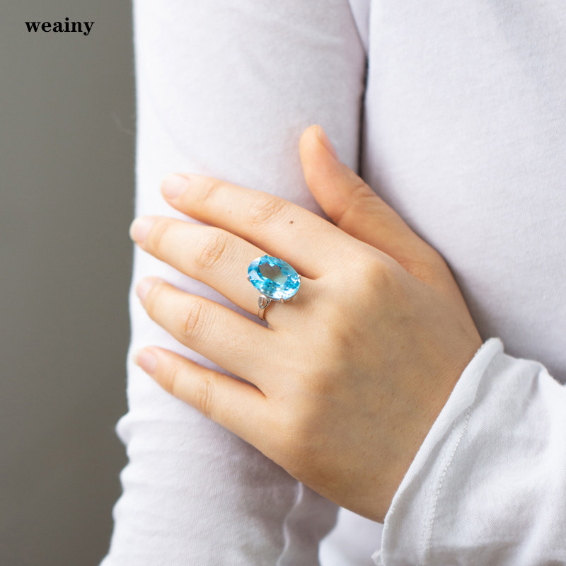 16克拉天然托帕石戒指瑞士蓝色宝石纯银不过敏活口女送老婆礼物